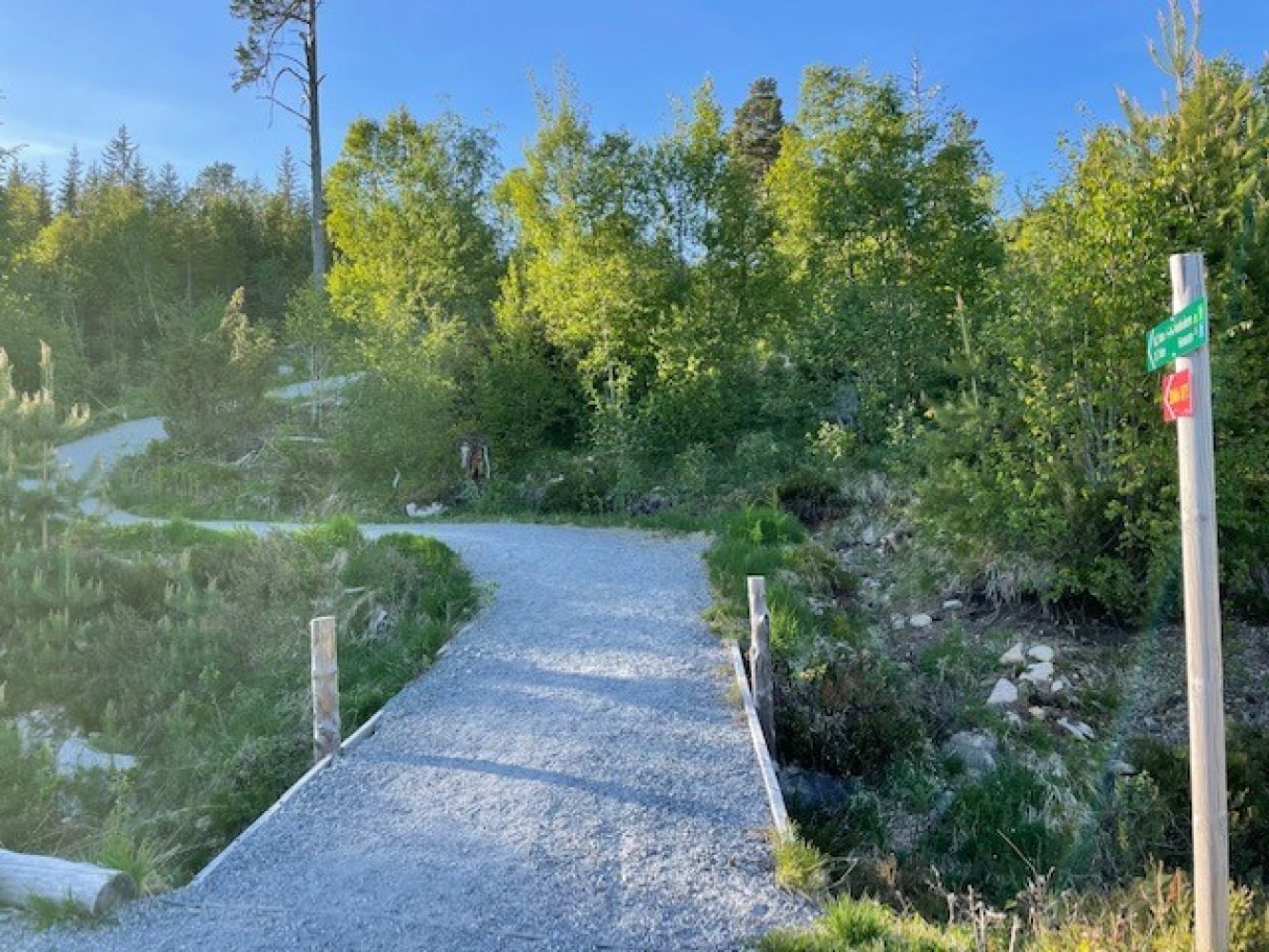 Fin tur til en gapahuk med fantastisk utsikt fra østsiden av byen. I starten av turen passerer man et kulturminne fra krigen. Noe stigning, spesielt i starten av turen og bratt liten stigning på slutten, flater ut halveis på turen. En tur som passer for hele familien. Om vinteren er det lurt å sjekke snøforholdene, turen er ikke brøytet. Det kan være greit med piggsko, brodder eller evnt. staver og gjerne en hodelykt i sekken.