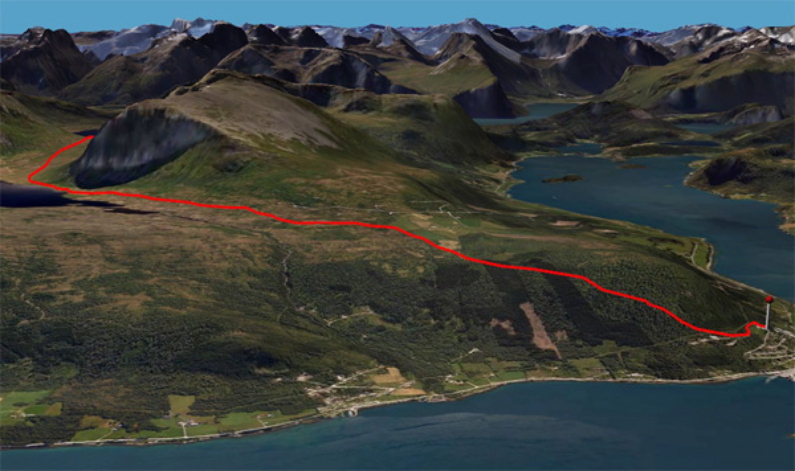 Parker ved idrettsbana på Åfarnes (øverst i boligfeltet). Følg vegen som går paralellt på oppsiden av fotballbana til enden av bana. og et par hundre meter videre. Ta av på sti opp til høyre like før trialområdet. og følg denne opp lia gjennom skogen.
