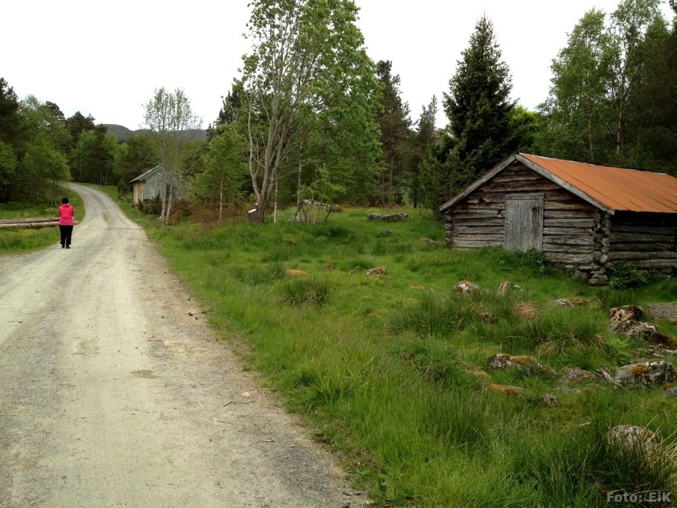 En fin, lett tur langs en skogsvei fra Åndal i søre Fræna til Åndalssetra. Jamn stigning hele veien, men lett å gå. En kan også sykle - ja, helt til Kringstad vest for Molde om en kan bære sykkelen et kort stykke. Den turen kommer vi tilbake til.På Åndalssetra er det bygget en rommelig gapahuk med bord, grillgryta og bålsted. Dette er til felles glede, er inngjerdet og kan brukes av alle, forteller en av grunneierne vi har snakket med. Her er det lunt om det blåser eller det kommer en regnskur.