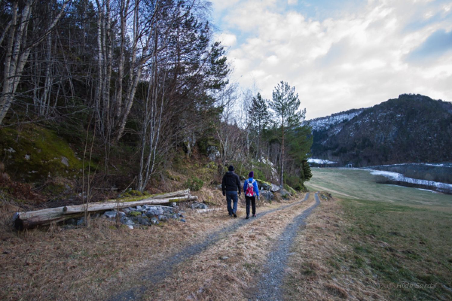 Parker ved Småbåthavna i Vaksvika og gå brua over elva. Følg skilt til Aksleskaret. Dette er ein rundtur så turen kan gåast begge vegar, men her er turen skildra med start til høgre langs grusstien og sjøen. Stien svingar ganske fort opp gjennom skogen. Her er det gamal blandingsskog og mange spanande og rare tre. Stien har merke i trea. Etter ca 300 meter er det eit skilta stidele. Her kan du gjere ein avstikkar ned til sjøen ved Kvitneset. Gå same veg tilbake til skiltet og hald fram opp gjennom skogen mot Aksleskaret. Etterkvart får vi utsikt mot Hallvardfjellet og innover Storfjorden og fjella i Stordal. Vi kjem opp til markane ved Viset og går delvis på gamle traktorvegar. Følg med på merkinga kvar stien igjen tek av inn i skogen. Turkassa heng på eit tre med god utsikt over fjorden. Sjå den første bildet. Stien følgjer ein gamal veg over Aksleskaret før vi igjen ser over mot gardane i Vaksvika. Hald til høgre langs ein granskog og gå gjennom eit gjerde. Etter ei lita stund er stien merka med eit skilt og svingar brått til venstre. Herifrå går det raskt ned att til småbåthavna.
