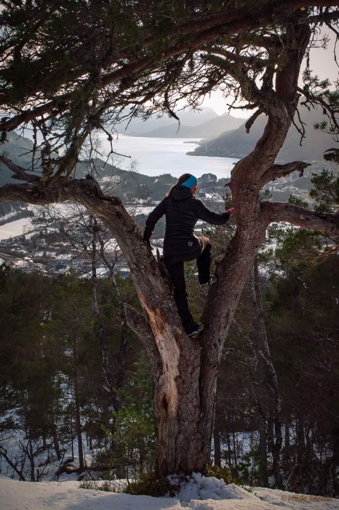 Følg setervegen som går opp frå Giskemosaga. Hald til høgre i det første vegdele. Det står skilt der du skal ta av til Amdamsetra. Sjå bildet. Ta av til venstre her og gå eit par hundre meter bort til setra. Turmålet er utsiktspunktet like på nedsida av vegen når du kjem inn på setra. Herifrå er det fin utsikt mot Sjøholt. Fine klatretrær der du kan ta flotte bilde! Amdamsetra er ei nyare seter som vart opparbeidd rundt 1940. Sela ligg side ved side. Det var seterdrift her til ca 1960.