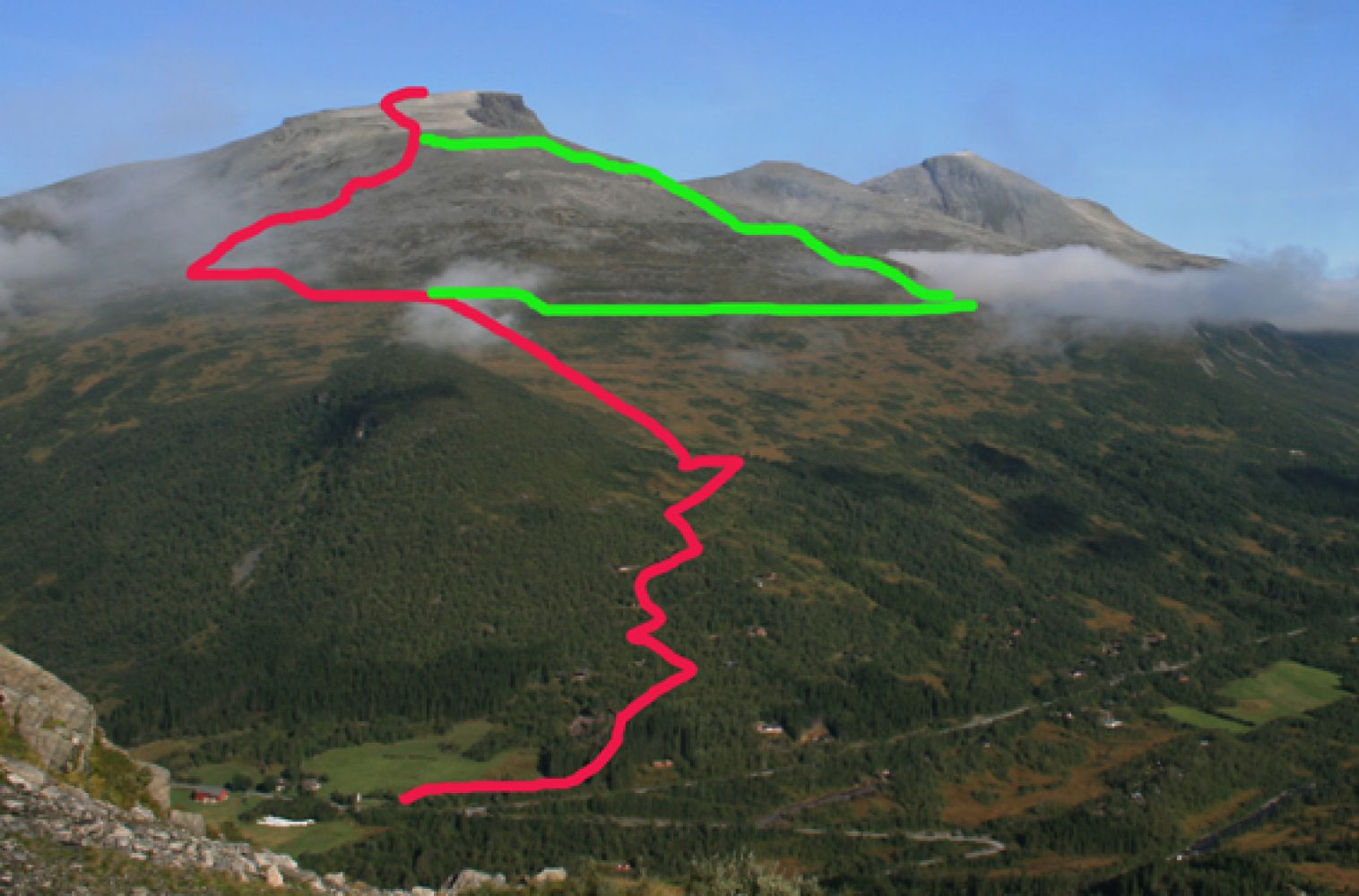 Frå Auskjeret har du eit flott utsyn mot fjell og fjordar. Du ser godt i retning Vestnes og Romsdalsfjorden. Eit senterfjell. Passerer kulturminne/sæter ved eine vegvalet.