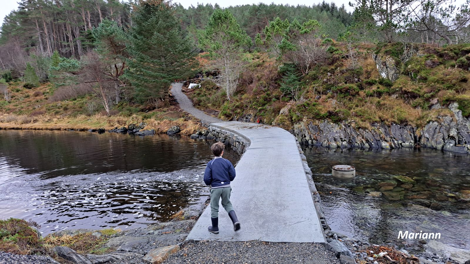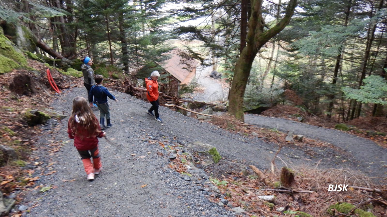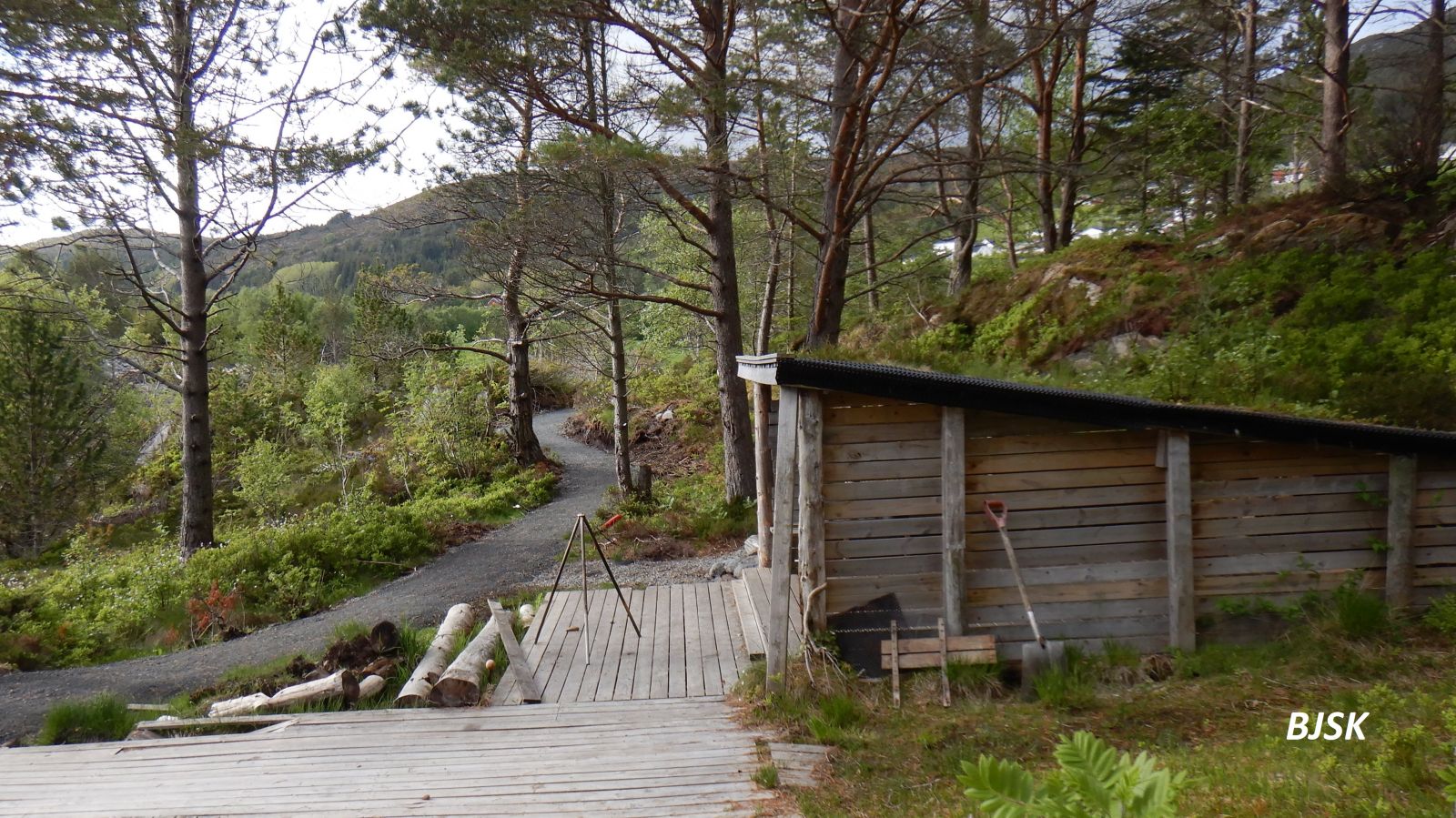 2 . Frå Breidablik/Larsnes skule: Gå ned på sørsida av skulen kor du finn vegen som går ned til krysset mot rådhuset. Der tek du til høgre og fyljer opplysningane over.