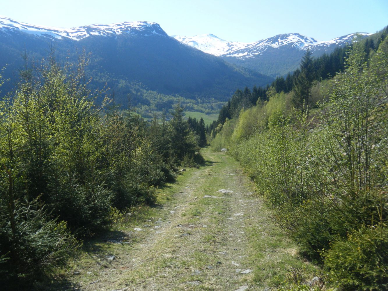 Turen starter ved riksveien på Bergset i Vistdal, og krysser elva Visa ved Bergsethølen (se bilde). Første del av veien er ankomstveien til et par gårder. Deretter svinger den ned til elvekanten og følger den noen hundre meter. Ved et veiskille tar du til høyre opp en bakke og beveger deg bort fra elva. Turen går etter en bred grusvei før en sti tar over i enden. Stien går blant annet over en bekk med bro (se bilde). Stien er ca.300 meter lang. Da er det grusvei igjen med bro over Visa, og du kommer opp på riksveien på Nerland. Ønsker du å gå Nerlandslia til Ødegård, så må du ta til venstre nedover bygda og følge riksveien et lite stykke før du går over på grusvei igjen (skiltet til Svarttind). Herfra er det bare å følge veien som peker seg ut som "hovedveien" blant skogsveiene til en traktorvei tar over og bringer deg ned til ødegård igjen. Grusveien fra Nerland tar deg blant annet forbi badekulpen i "Hawaii" som kan være et fristende stoppested en varm sommerdag. Du kommer deg stort sett tørrskodd gjennom løypa med vanlige joggesko, men et lite parti av stien i Bergsetmarka kan være litt vått. Turen er ikke skiltet.