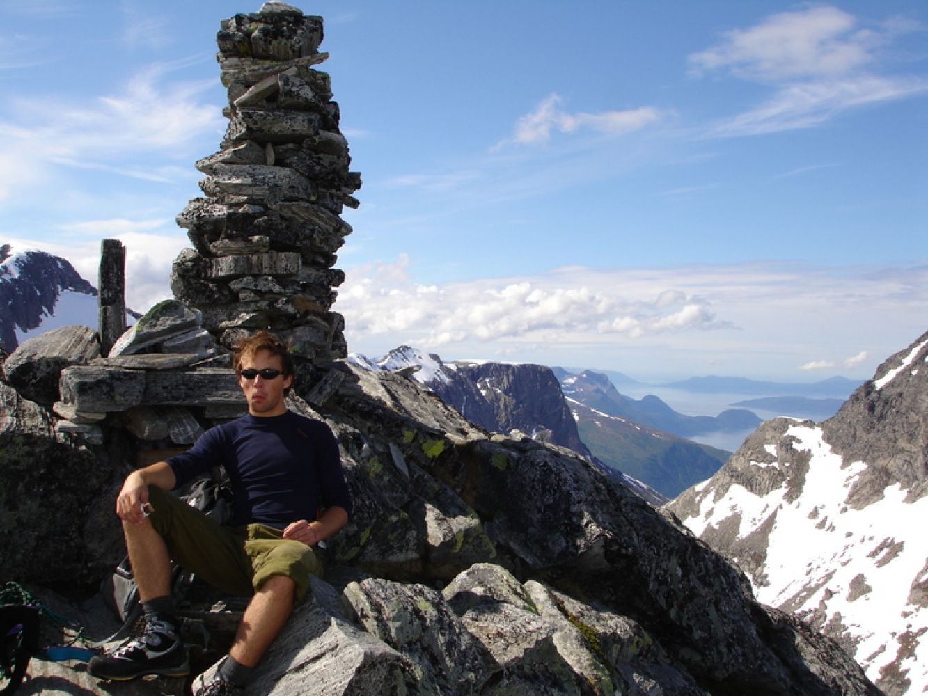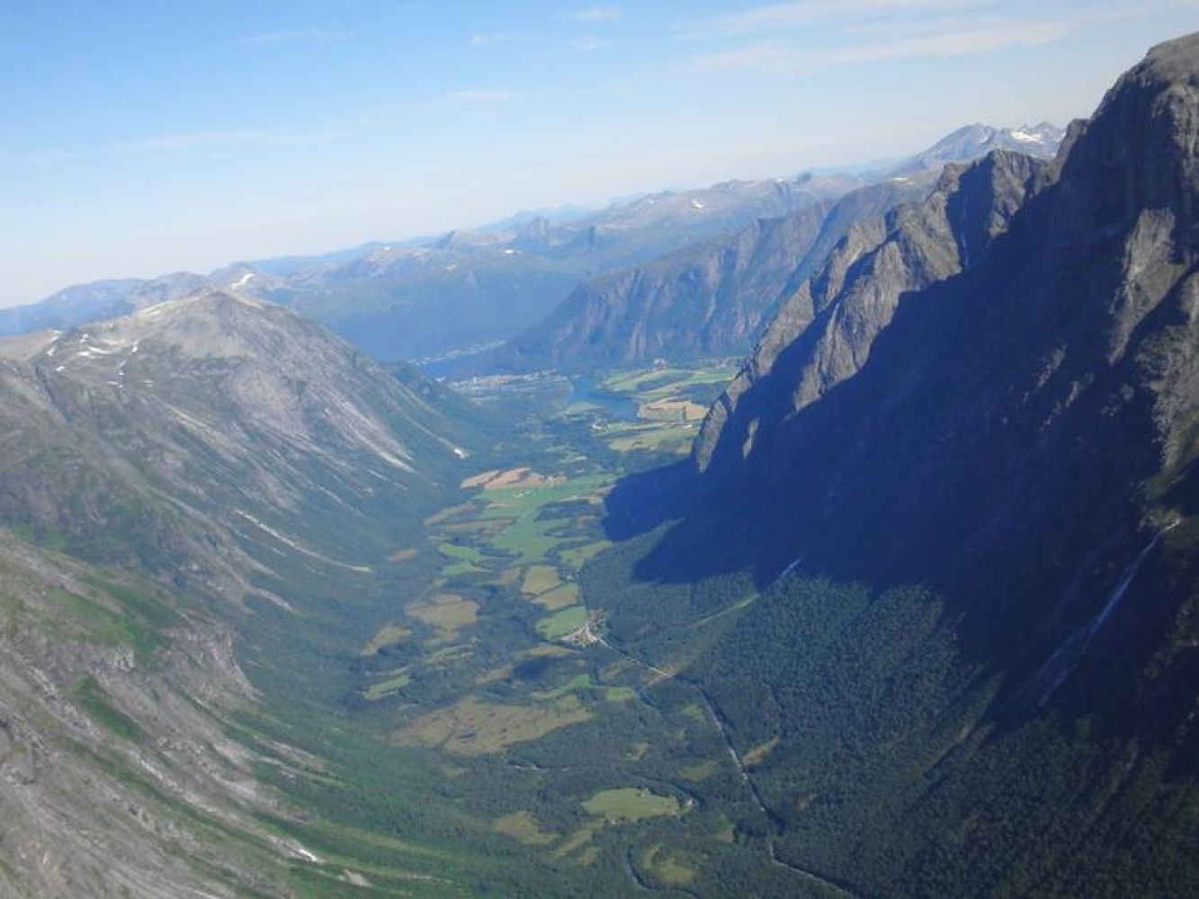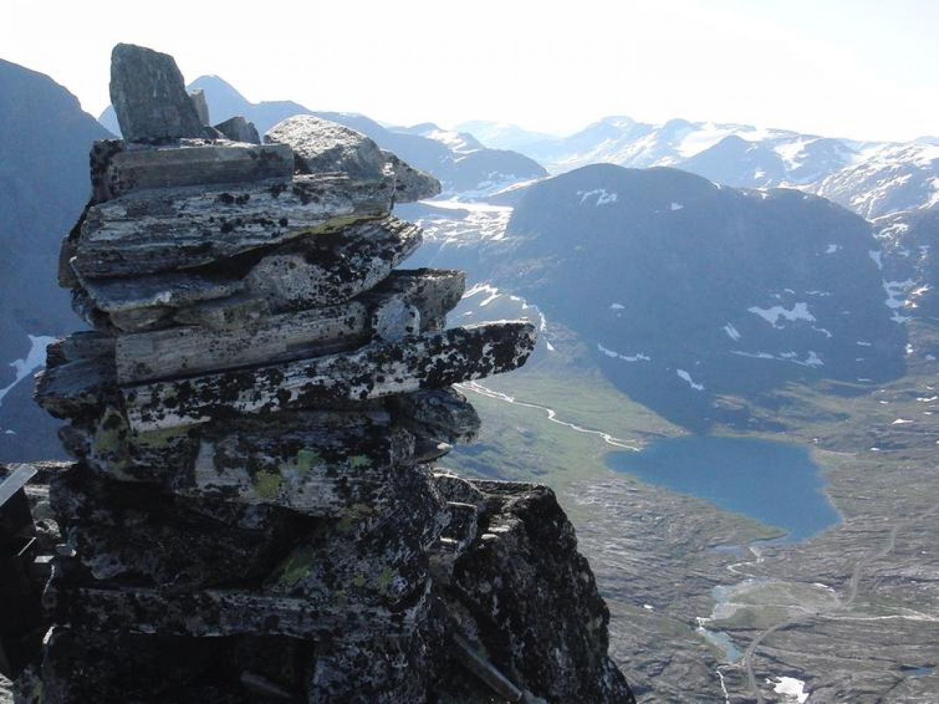 Akkurat når en går ned fra toppryggen ser det ut som om stien går nedover, men en skal bare 5 meter ned og så runde ut på nordryggen. Kilde: http://romsdal.com/