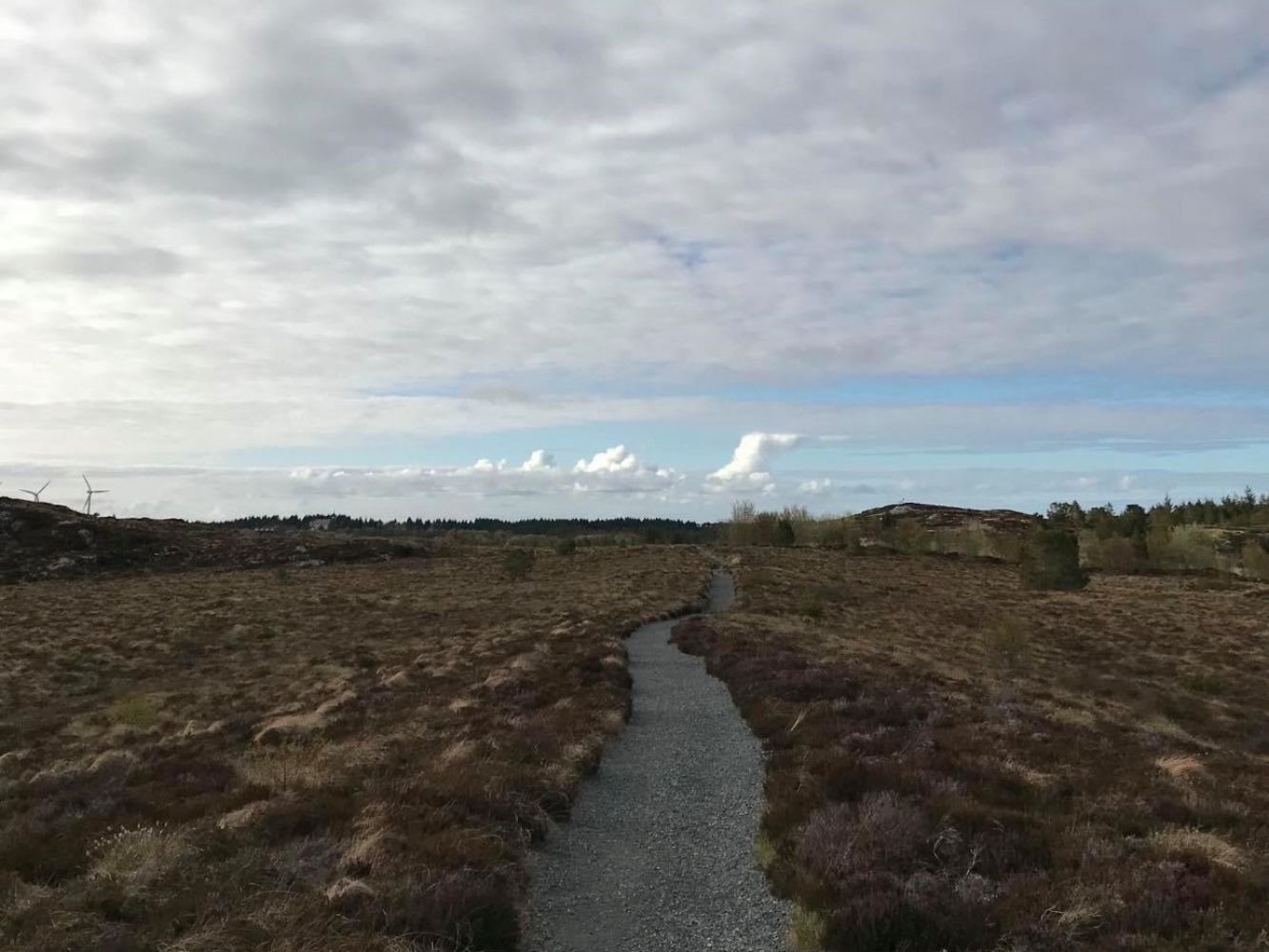 På den lille toppen Bjergane får du ei flott utsikt innover mot fjella på fastlandet og utover mot havet. Stien er brei og god, kan gåast i all slags vêr og passar for heile familien, også med barnevogn.