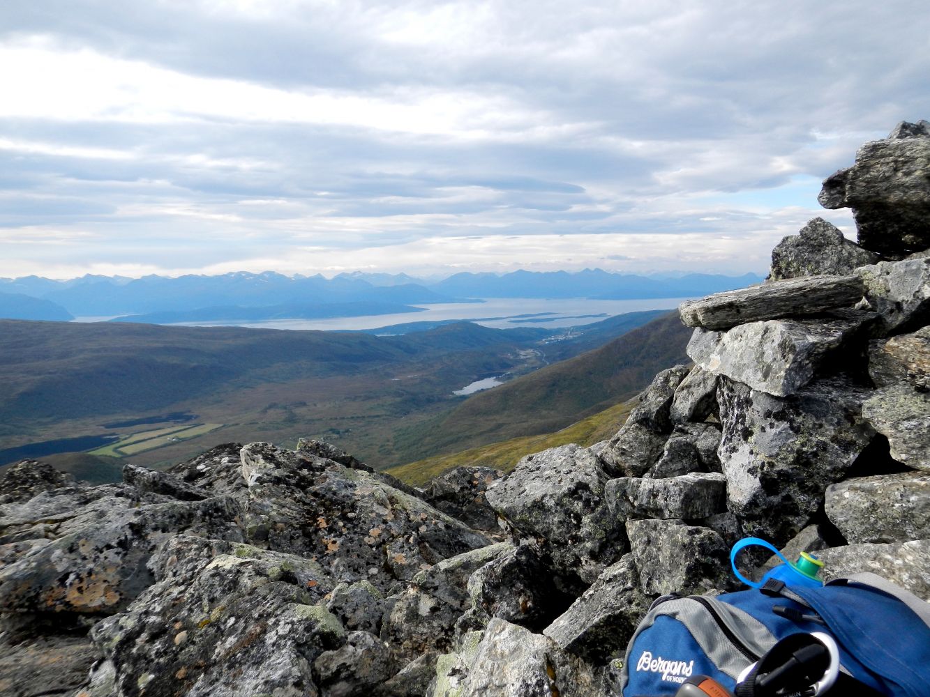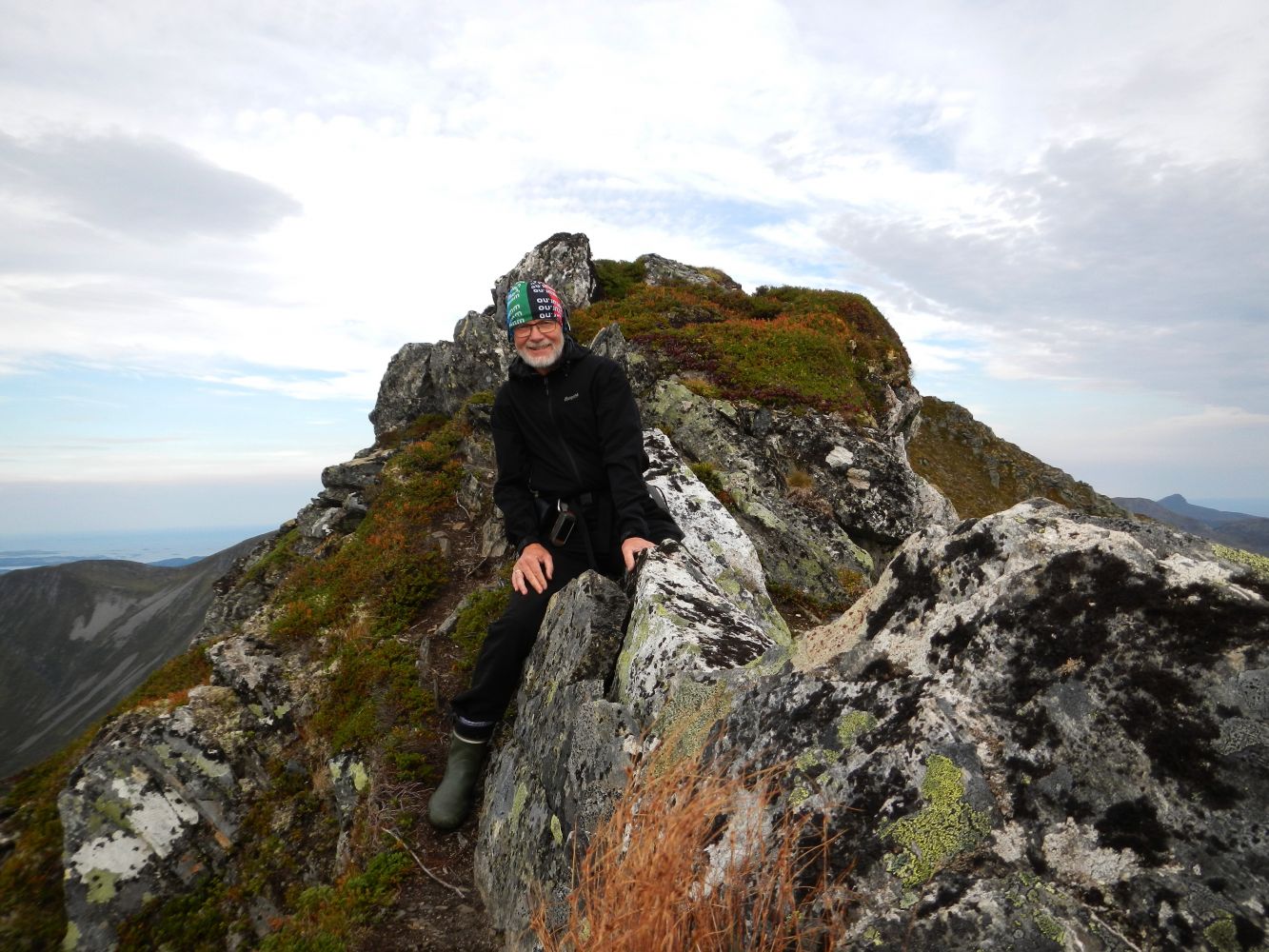 Etter en times vandring er du på ryggen og følger den opp mot toppen, en ny times vandring. Like før klippene kan du holde til høyre, følge sauetråkket og slippe kliving og luftige partier. Du kommer innpå ryggen litt nord for toppen og går noen meter opp og tilbake til varden og gjesteboka. Men vil du ha litt mer spenning - er turen over klippetoppene like før toppen, å anbefale. Her kan du stå med et bein i Hustadvika og et i Gjemnes kommune :-)