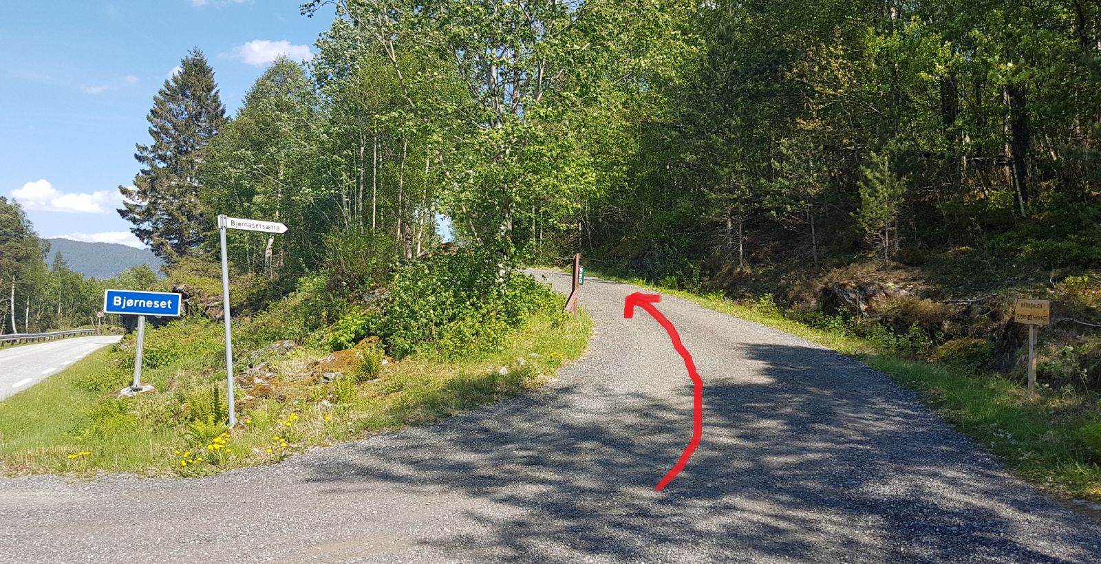 Frå Volda - Folkestad: Ta ferge til Folkestad. Følg E39/651 til Straumshamn og ta av til Fyrde (Bjørnesetvegen) like etter brua i 50-sona. Kjør vidare til du kjem til Bjørneset. Like før du kjem til 50-sona og Bjørneset-skiltet tek du av til Bjørnesetsætra. Ta av til høgre på grusvegen og du kjem straks til bom"stasjonen". Prisen er kr.30 for personbil (2018, kontant betaling). Følg god bomveg vidare i ca 2,5 km. Det er bra med parkeringsplass i enden av bomvegen