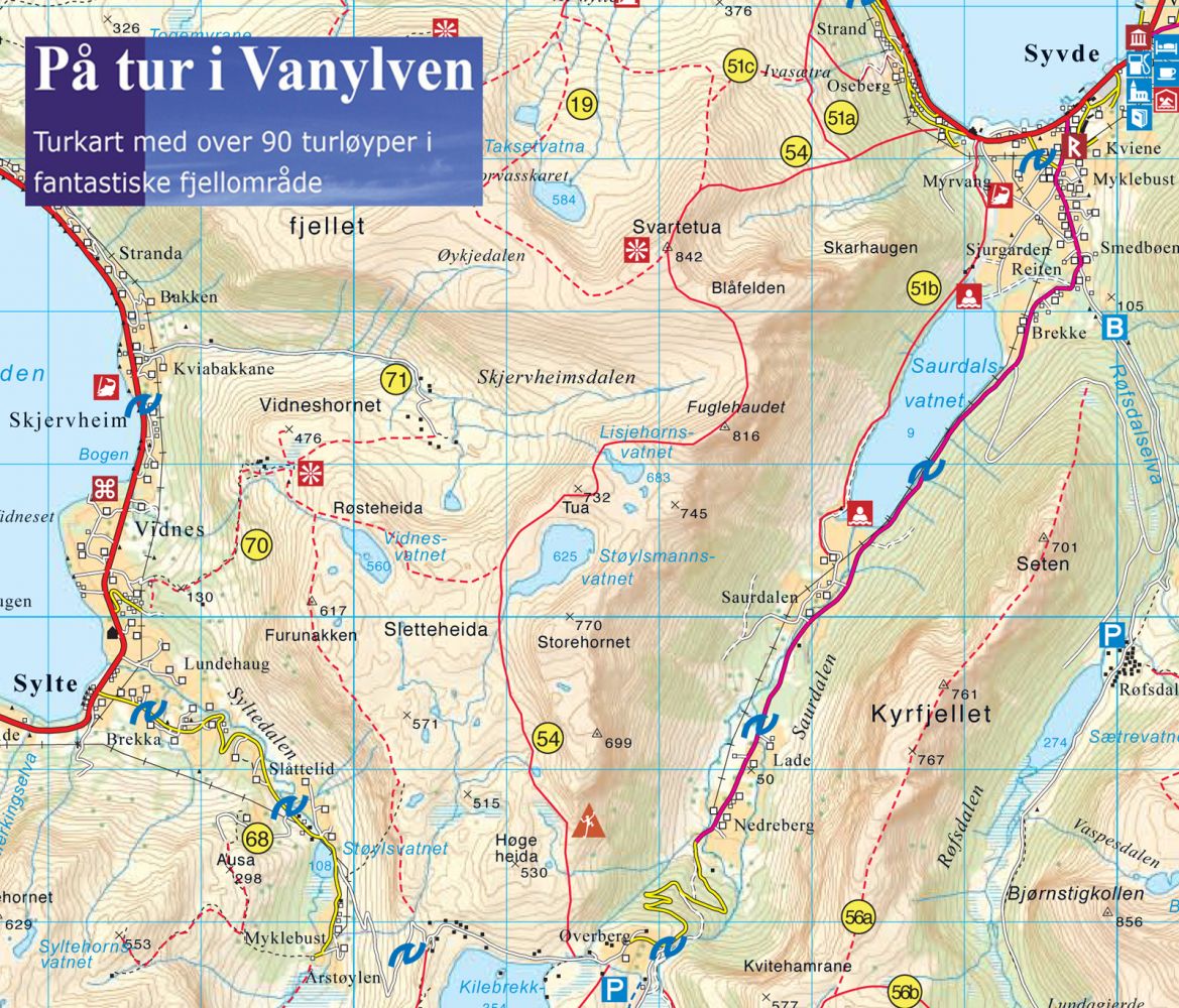 Viss du ønskjer å gå i ei godt merka rute med store variasjonar i terreng, naturtype og med stadig skiftande utsikt over stor delar av Vanylven er dette eit godt val. Ruta går mellom Syvde og Øverberg. Ein kan gå heile ruta frå nord til sør eller omvendt, eller ein kan gå delar av ruta og returnere til startpunktet.