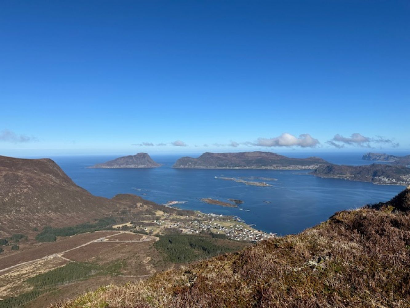 Det er råd vidare mot Storhanen på eggen, men pass på, det er bratt utfor kantet. Flott ustikt mot Skorpa og Skorpesundet i vest/nordvest.