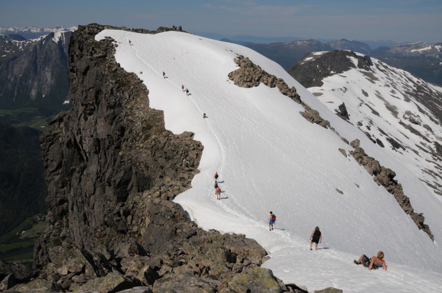 Enkel og flott topptur opp til en fjelltopp som ligger fantastisk til mellom Romsdalen og Venjesdalen. Fin toppegg på slutten.