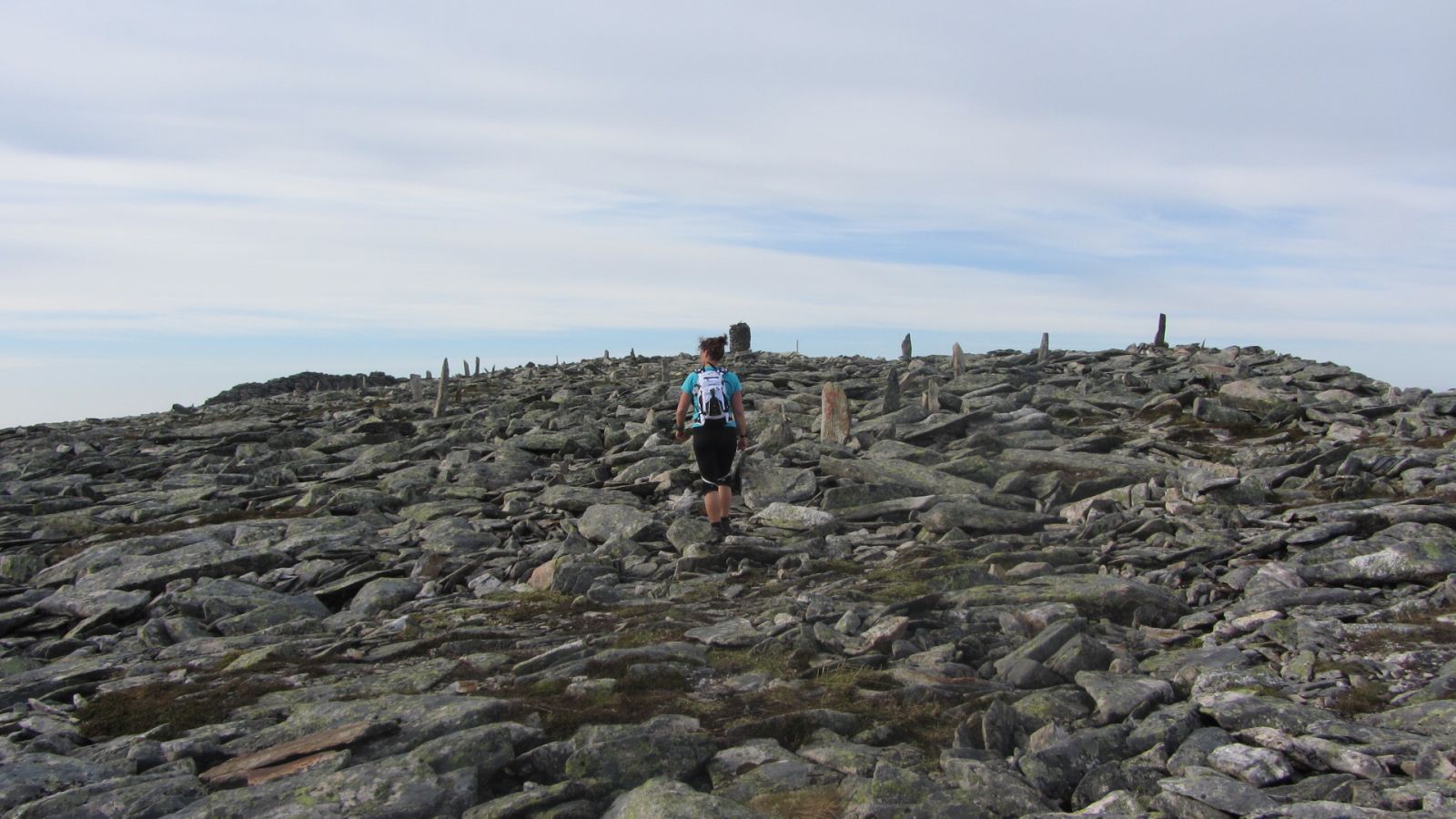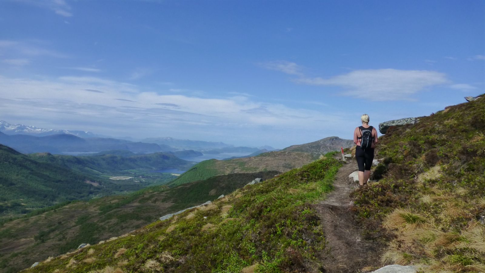 Kryss hovudvegen og fortsett oppover langs traktorvegen nokre hundre meter. I krysset med traktorveg (t.h) skal ein ta av og følg råsa, som er merka med raudmåling på pinnar eller steinar, i god stigning oppover. Når ein passerer skoggrensa kjem ein til ein steinvarde. Herifrå er det berre å følgje den tydelege råsa vidare (ver obs på at det er fleire råsalternativ oppover). Så langt som råd er råsa lagt der det er vegetasjon. Når ein startar på ura må ein sjå godt etter dei raude merka. Ver klar over at tidleg i sesongen når det ligg snø så vil ein del av merkinga på steinar ikkje vere synleg. Mot slutten av ura dreiar råsa først mot venstre, så til høgre igjen. Her er det storblokka ur, og det er eit vidt område med ur på topp-platået der varden står. Det er trimpostkasse i varden.