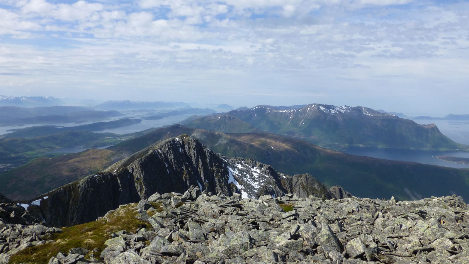Blåskjerdingen (1061 moh) er det høgaste fjellet i Haram. Den karakteristiske kløfta mellom sør- og nordtoppen, som er synleg rundt om i heile distriket, vart mellom anna nytta som orienteringspunkt for meda fiskarane brukte før i tida. Toppen på sørsida er eit langstrakt platå som består av storblokka ur, medan nordtoppen er spiss. Ein stor steinvarde, med innebygd trimpostkasse, er reist på det sørlege topp-platået. Det er ei storslagen utsikt i alle retningar. For dei ekstra modige, utan høgdeskrekk, går det an å gå over kløfta mellom toppane og over på den åtte meter høgare nordtoppen.