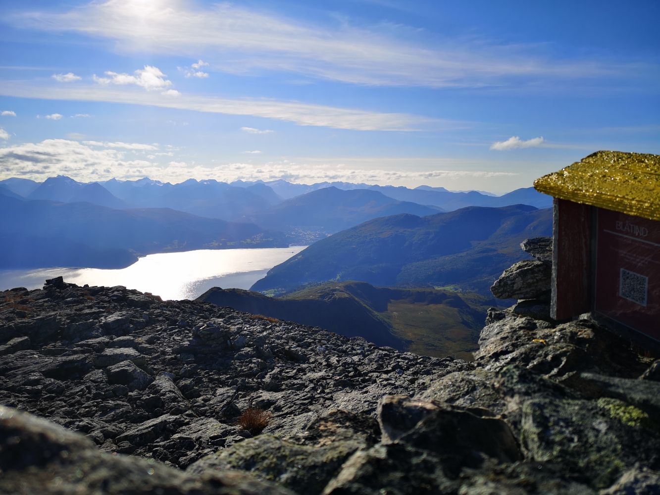 Storslått panoramautsikt over fjell og fjord i indre Storfjorden