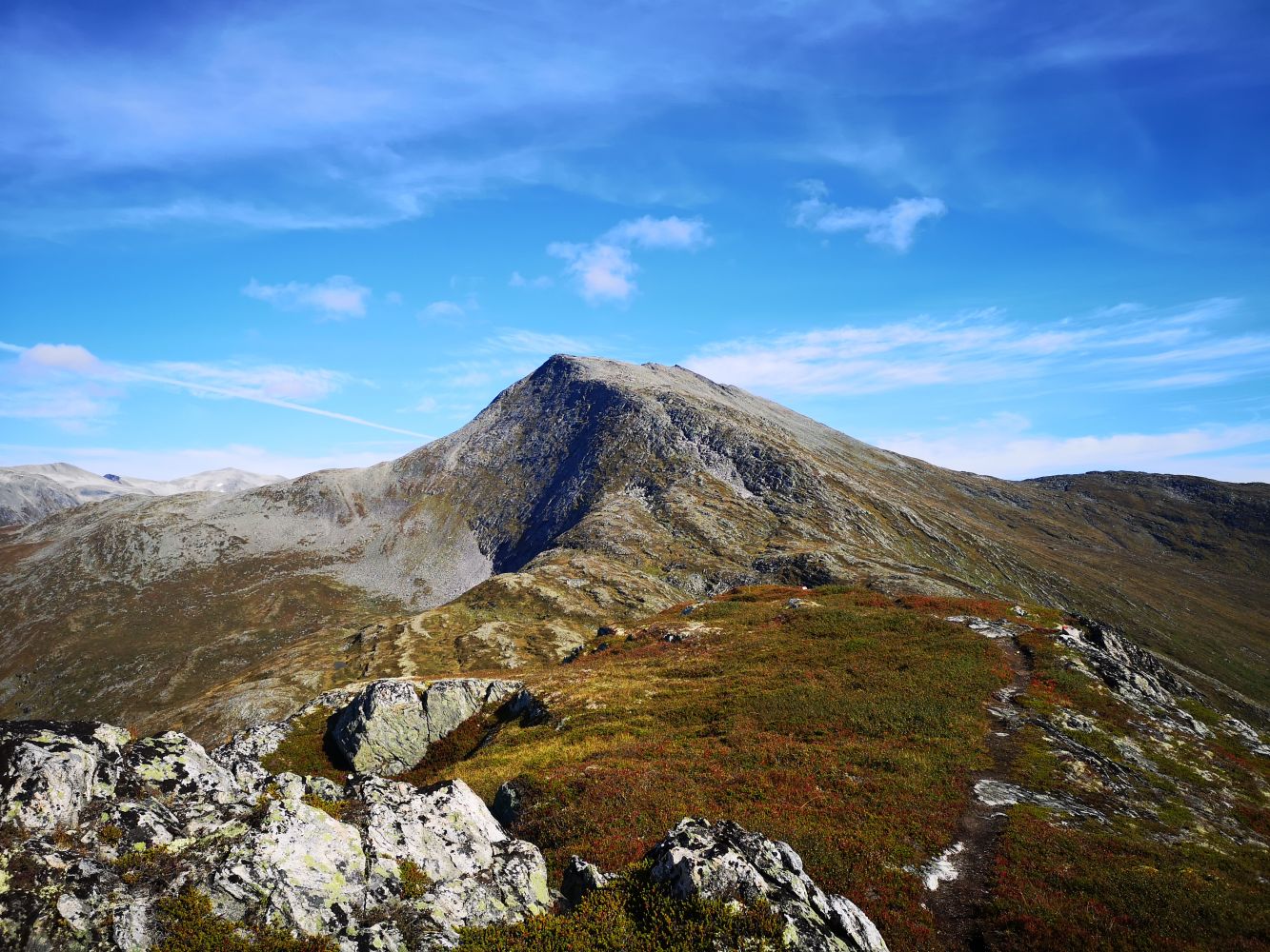 Frå Liahornet følgjer du stien ned på motsatt side av der ein kom opp. Følg videre merking og skilting mot Blåtinden.