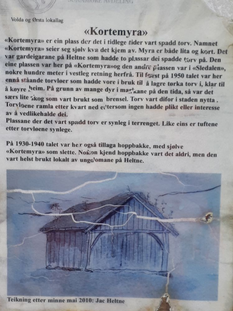 Heltnelihuken er bygd av Volda Rotary i 2014 og er eit populært turmål. På Kortemyra vart det tatt spadd torv i tidlegare tider. Namnet kjem av at myra er både lita og kort (sjå bilete med meir info). Namnet Dunderhoff lurer du sikkert på kva kjem frå. Du kan lese om det på eit av bileta. Turnhytta er eigd av VTI Allidrett, og vert drifta av Foreininga Melshornets venner. I 2015 feira hytta 100-år! Vil du leige hytta, kan du kontakte Melshornets venner.