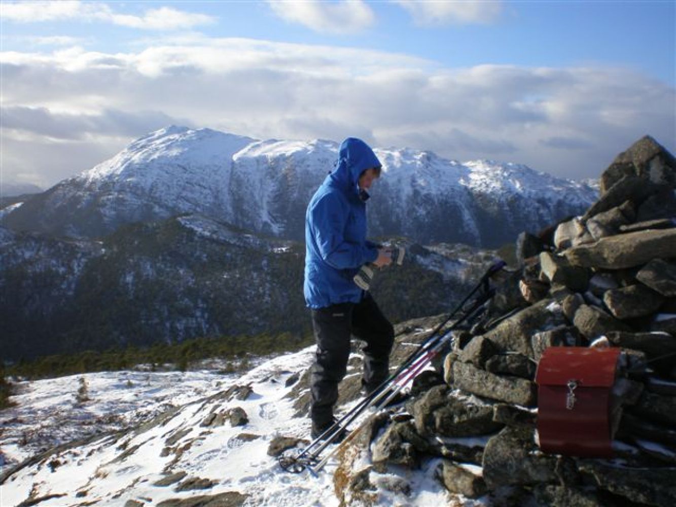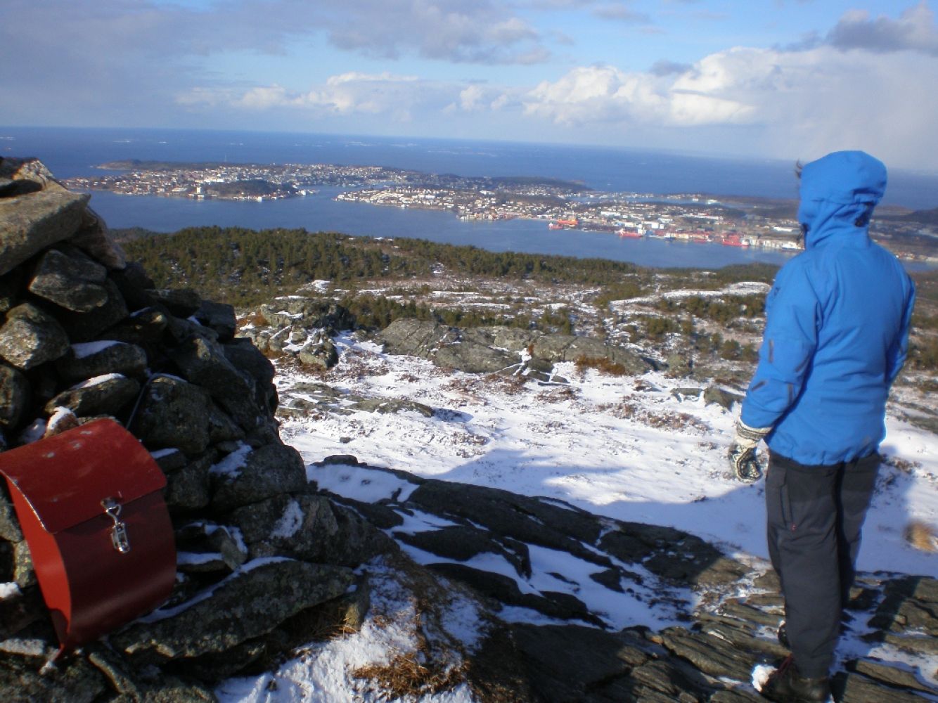 Flott utsikt mot byen og fjellene rundt. Turkasse på toppen som Rensvik velforening har ansvaret for.