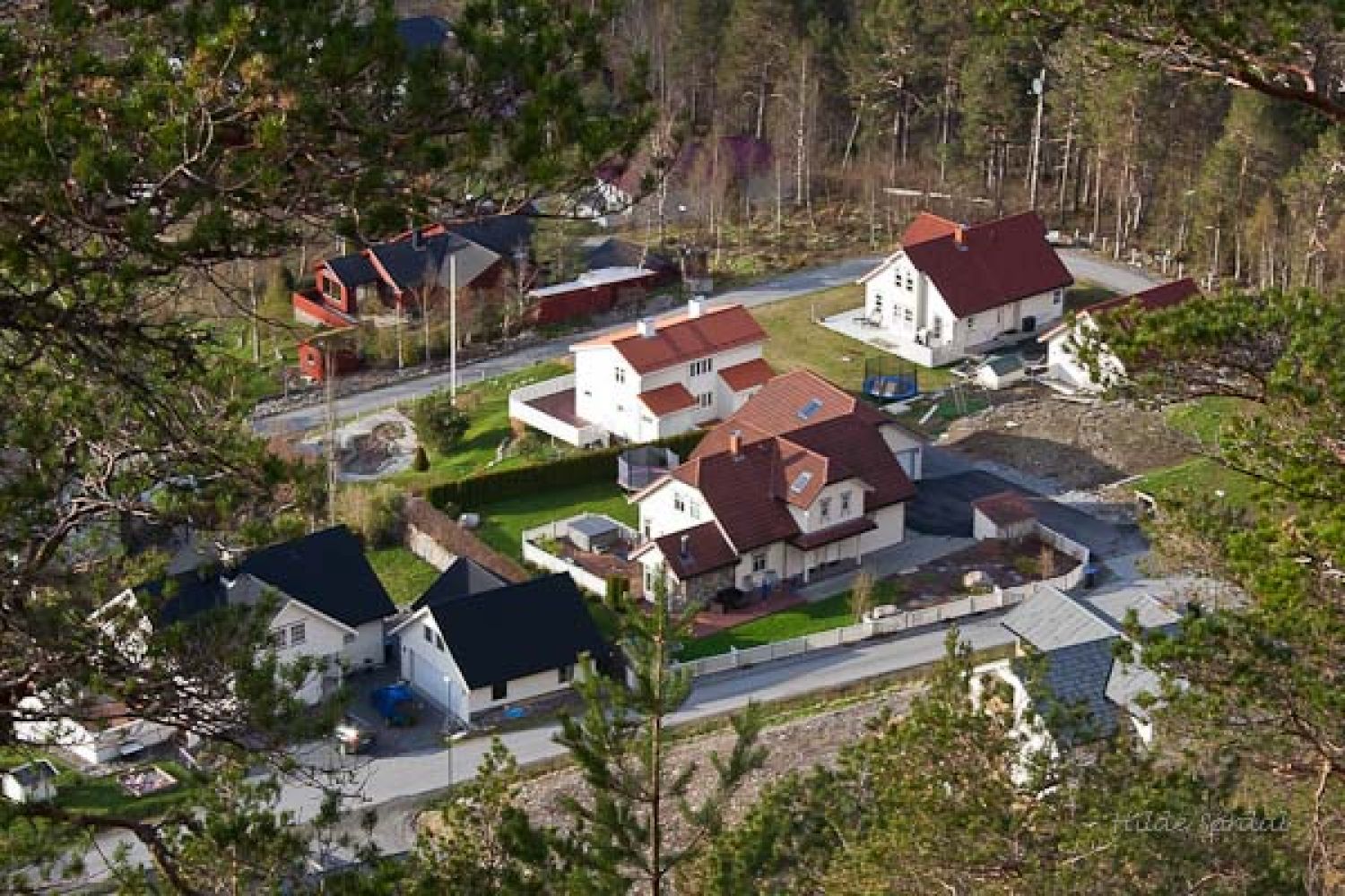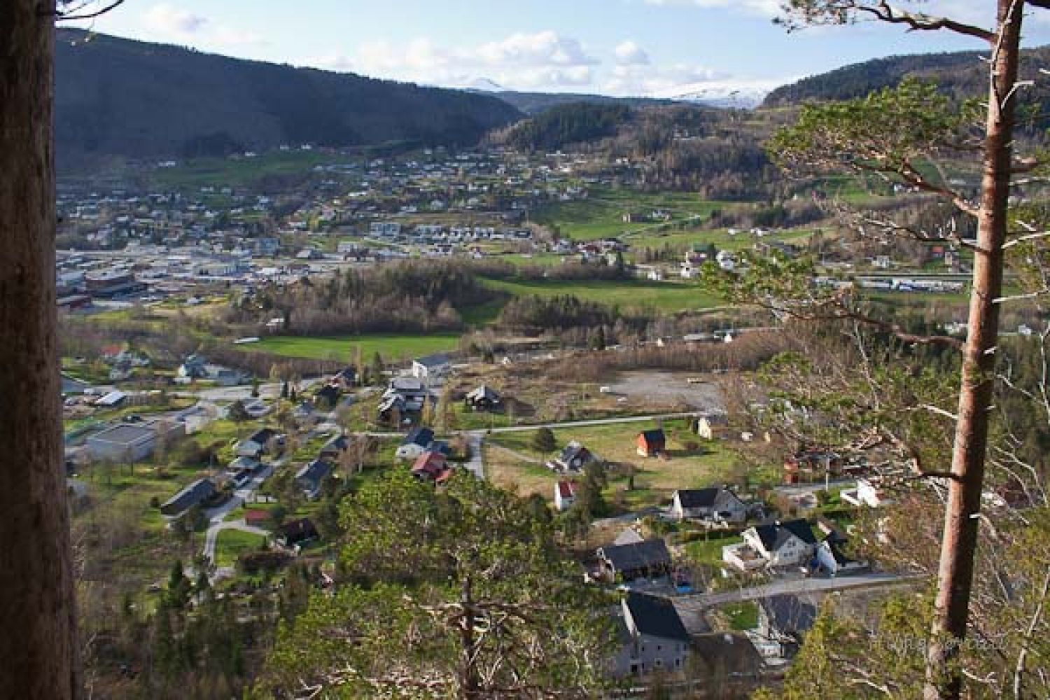 Ein kan halde fram i same retninga, etter kvart kjem ein ut av granfeltet og terrenget fell roleg mot aust. Dersom ein held fram til ein er på høgde med husa på Tuenegarden, kan ein gå ned til desse langs ein gamal ferdelsveg som enno er synleg, Hanskleiva. Går ein i staden til høgre, vil ein etter kvart kome fram til det nye industrifeltet i Haukåsmarka.
