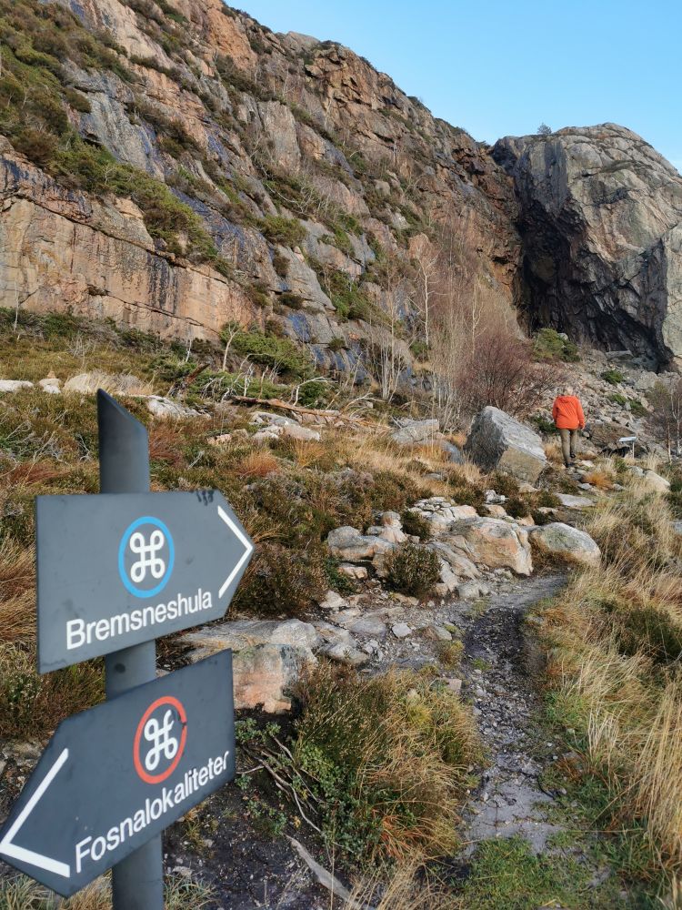 Turen går i lett kupert og variert terreng på merket sti. Deler av turen går langs en folkesti med grønn merking, og dels med røde stikkUT!-merker. Starten på turen er kloppet og tørr. Når en nærmer seg Bremsneshatten, deler stien seg. En skal da følge stien mot høyre langs nordsiden av Bremsneshatten. En må her krysse noen partier som kan være våte etter mye regnvær. En del av turen går også på berg merket med varder. Etter å ha rundet Bremsneshatten, vil en etterhvert se hula på toppen av en steinrøys. StikkUT!-koden er plassert ved infoskiltet nederst i steinrøysa. På vinterstid må en gjøre en vurdering om det er trygt å gå inn i hula. På kalde dager kan det bli glatt i steinrøysa, og en må være obs på istapper i taket ved inngangen til hula. Er forholdene bra, anbefales virkelig å ta turen inn. Dagslyset går ganske langt inn i den 70-80 meter lange hula, men om en vil utforske de innerste delene må en ha hodelykt. De aller tøffeste kan klatre opp en stige for å komme inn i et mye mindre rom. Det er funnet rester av bein og pilspisser her fra bosetting for flere årtusen siden. Når en er ferdig med å utforske hula, kan en kan gå samme vei tilbake eller fortsette videre rundt Bremsneshatten for å få en rundtur. Langs turen passerer en flere infoskilt. Hele området er full av historie fra Fosnakulturen, og det er gjort mange arkeologiske funn her.