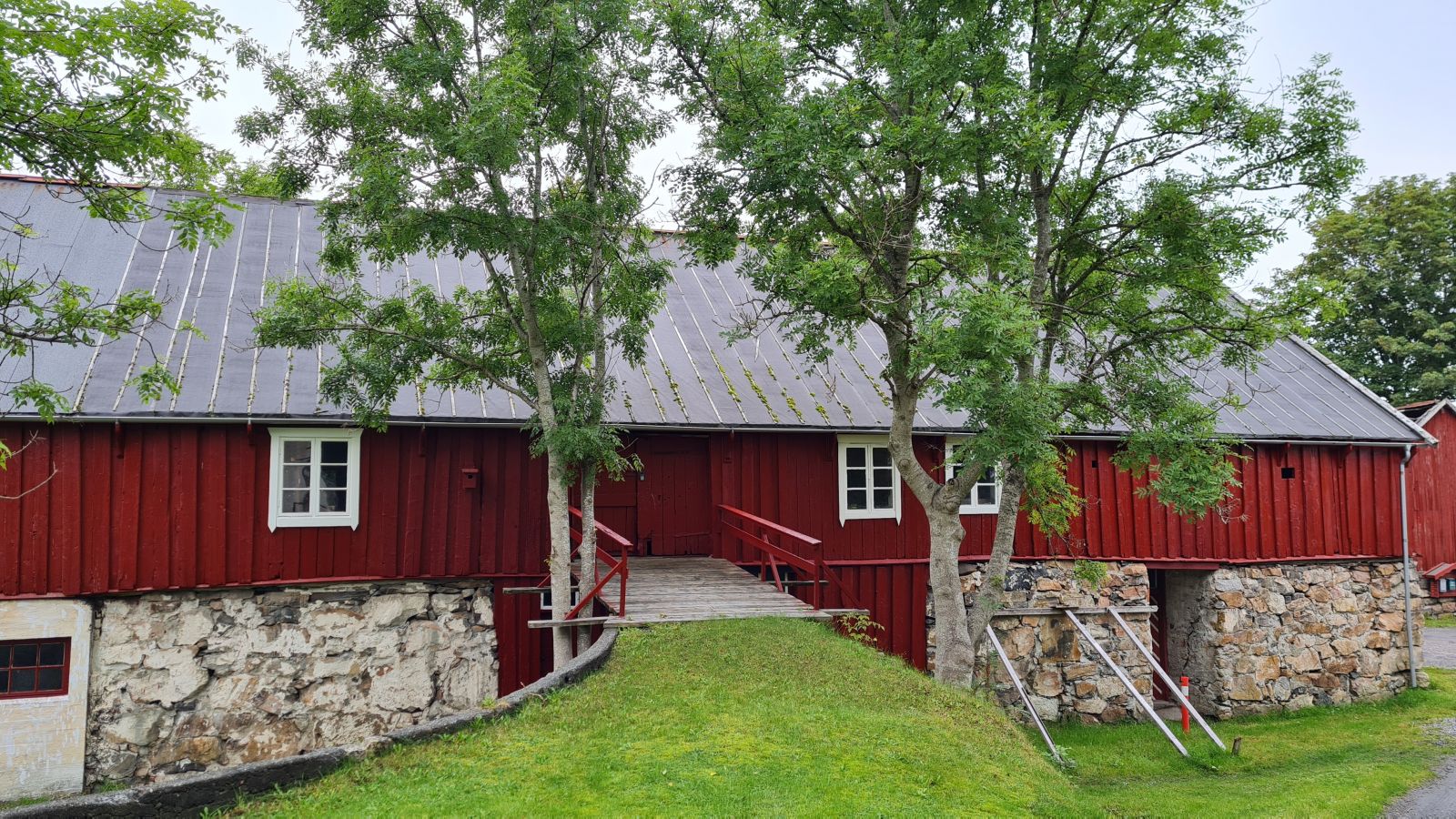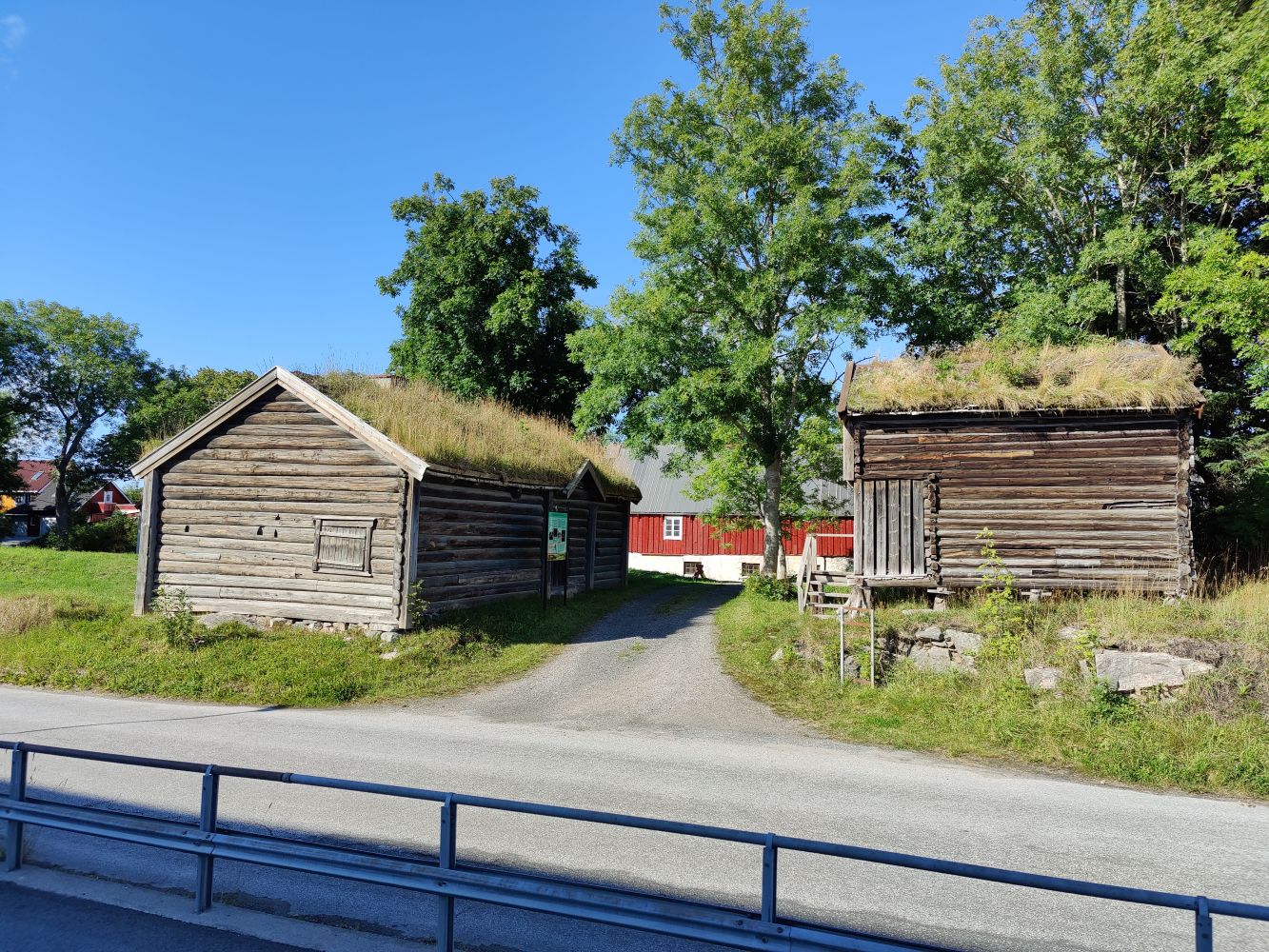 Fortsett mot Atlanterhavsbadet og kryss gaten over til de laftede tømmerbygningene Almskårstua og Flyumstabburet. Almskårstua fra Sunndalen ble bygd som røykovnstue i 1816. Røykovnstuene har navnet fra en stor, oppmurt ovn uten pipe. Røyken gikk ut gjennom ei luke i taket (ljoren). Flyumstabburet kommer fra en kjøpmannsgard på Nordlandet i Kristiansund.