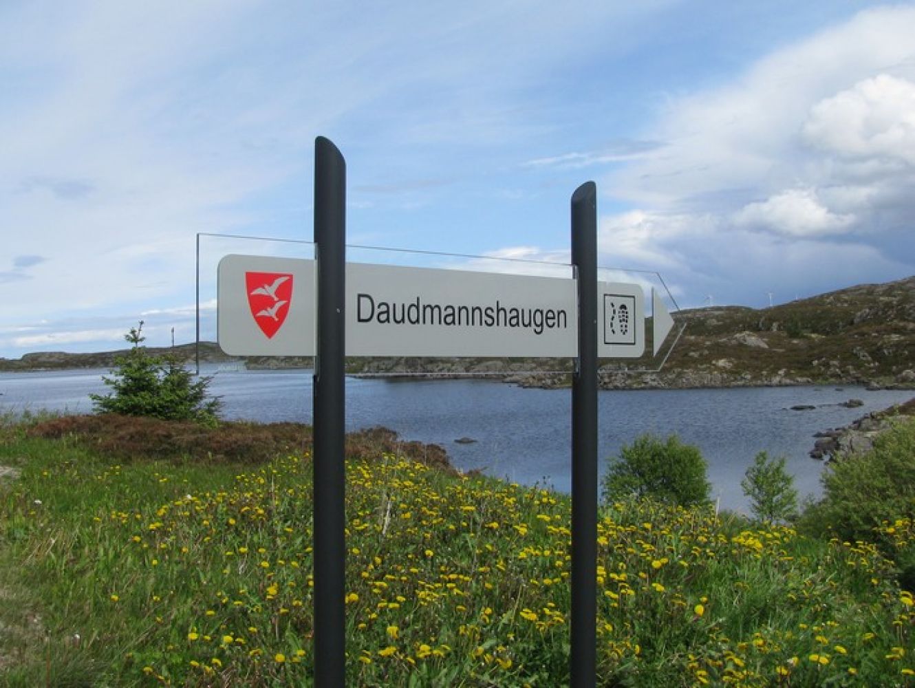 Daudmannshaugen er en av de postene som ligger virkelig vakkert til. Her kan en skue det meste av Sør-Smøla. Og tar du turen en kveld mens sola lager seg til med kveldsstellet, så kan du få en virkelig god opplevelse. Havranda ute i horisonten kan gi fargespekter som bare tar sinnet. Du har landemerket foran deg hele veien opp. "Seggelmerket" er et me som har vært brukt av sjømenn i mangfoldige år. Og når du er kommet fram, kan du altså nyte utsikten og registrere turen din. Og så kan du rusle godt fornøyd hjem igjen. Det både er godt og det gjør godt å gå på tur.