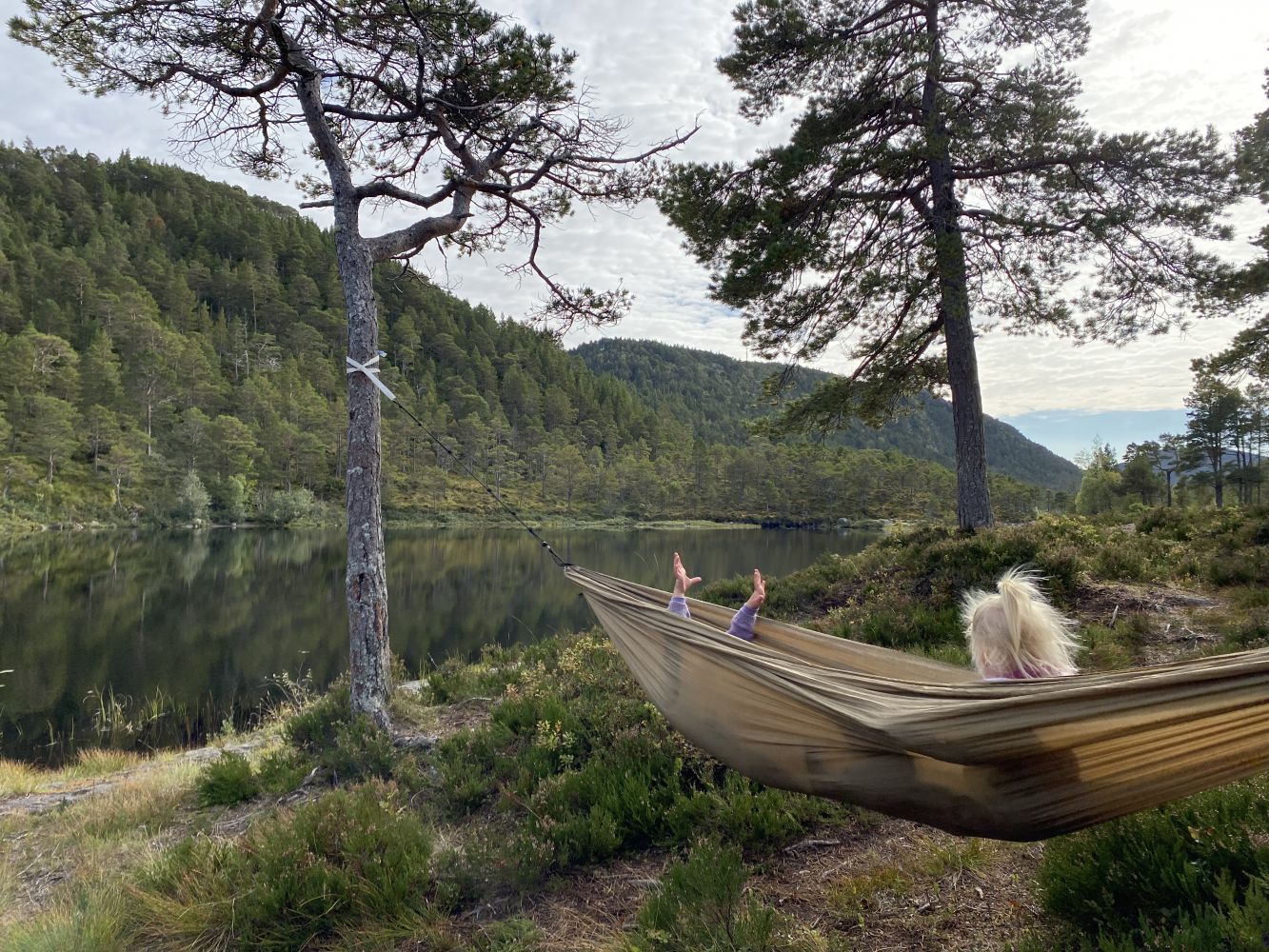 Det er fint å overnatte i hengekøye ved Drabovatnet.