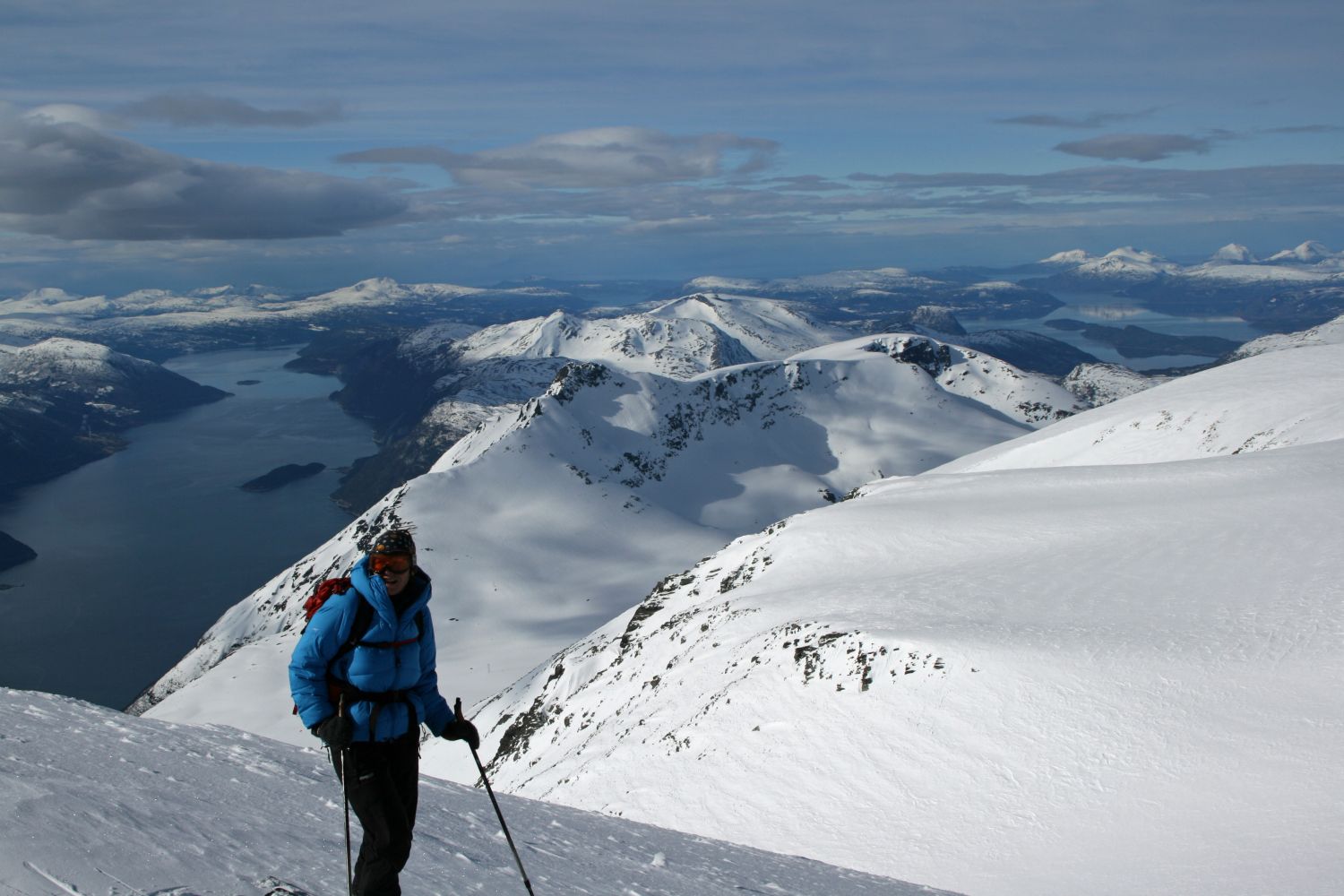 Vanligvis er det spor å følge opp lia. Men er du først ute går du fra gården ved Dalsbøen, langs bekk ca 100 meter før du begynner å gå opp lia. Du skal nå toppen av lia omtrent hvor høyspenten runder kanten inn mot Sandvikdalen. Hvis det er snøfritt i lia går det fin sti på østsiden av bekken opp lia. Når du kommer over tregrensa fortsetter du i sørlig retning til terrenget flater ut. Da begynner du å skrå opp bratta. Du skal komme opp på det laveste punktet syd for Sandvikhaugen. Videre fortsetter du langs ryggen frem til toppen av Dronningkrona