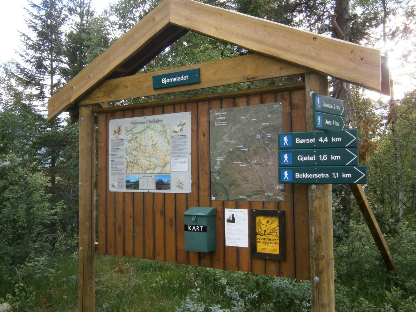 Skiltet til Folldalen. Følg bomveien ca 3 km til infotavle i Bjønnsledet.