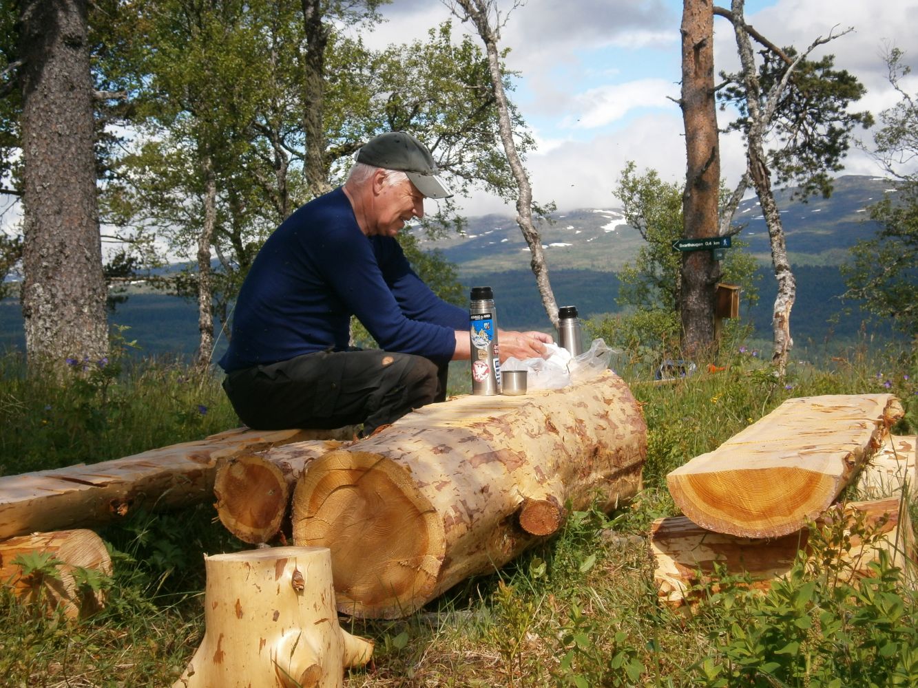 Bord, benk og bålplass ved trimboksen på Duvåsen.Ved å forlenge turen med 400 m til Svarthaugen, får man flott utsikt over hele dalføret både vest- og østover.