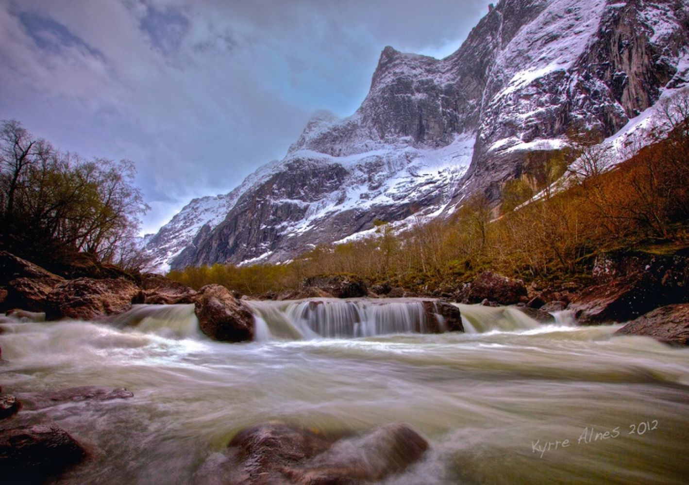 Turen går fra utkikkspunktet på Trollveggen opp til Gravhaugene på Horgheim, og ned igjen langs elva der den passerer mange av fossene og fine fiskeplasser i Rauma elv. På slutten passerer en gjennom Trollveggen Camping.