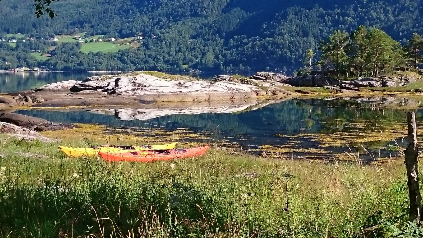 Videre padler du forbi Rødskjæret der du kan finne gamle murer etter bebyggelse og videre inn på Sølåtta.