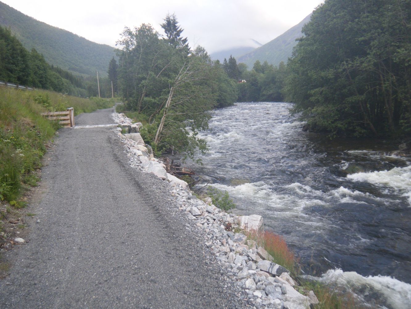 Elvastien følger elva Visa i nedre del av Vistdal. Fra den nye "Gammelbroa" på Myklebostad til Hellebroa (øverste avkjørsel til Lange). Stien er litt småkupert enkelte steder, men kan i all hovedsak beskrives som flat. Det er mange muligheter for å komme seg inn på elvastien fra hovedveien.