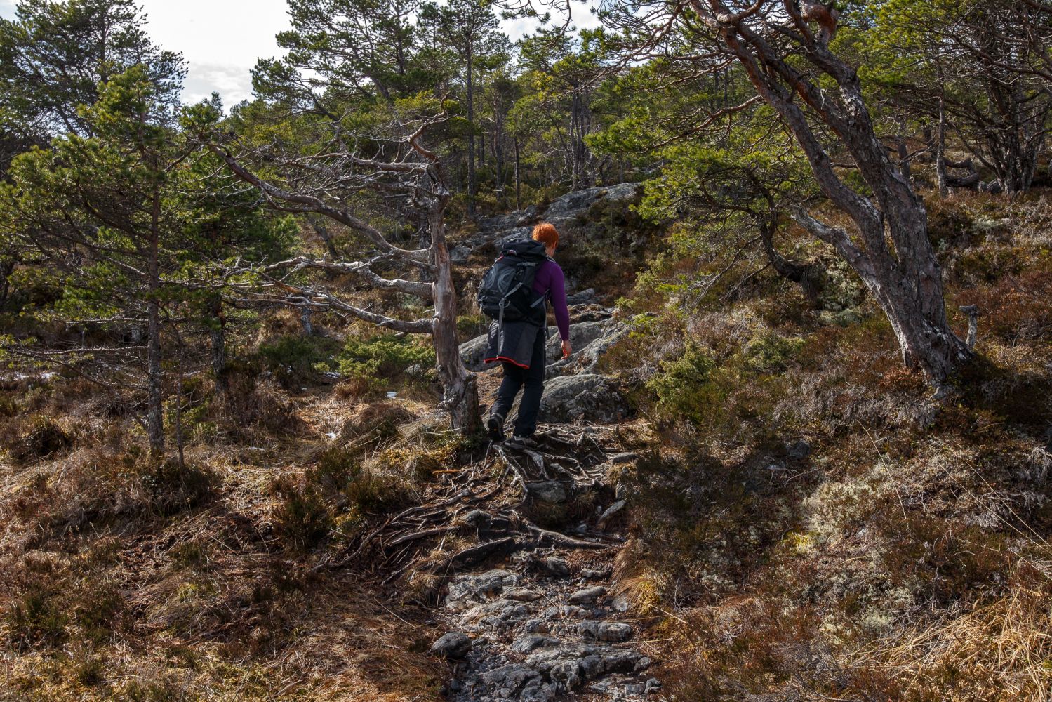 Gå litt tilbake fra parkeringsplassen og følg skilting. Godt opparbeidet sti, men ved mye nedbør bør vanntett skotøy benyttes. Stien går mye på svaberg og røtter. Jamn stigning frå foten av fjellet. God utsikt. De fleste krysspunkt i løypenettet er godt skiltet.