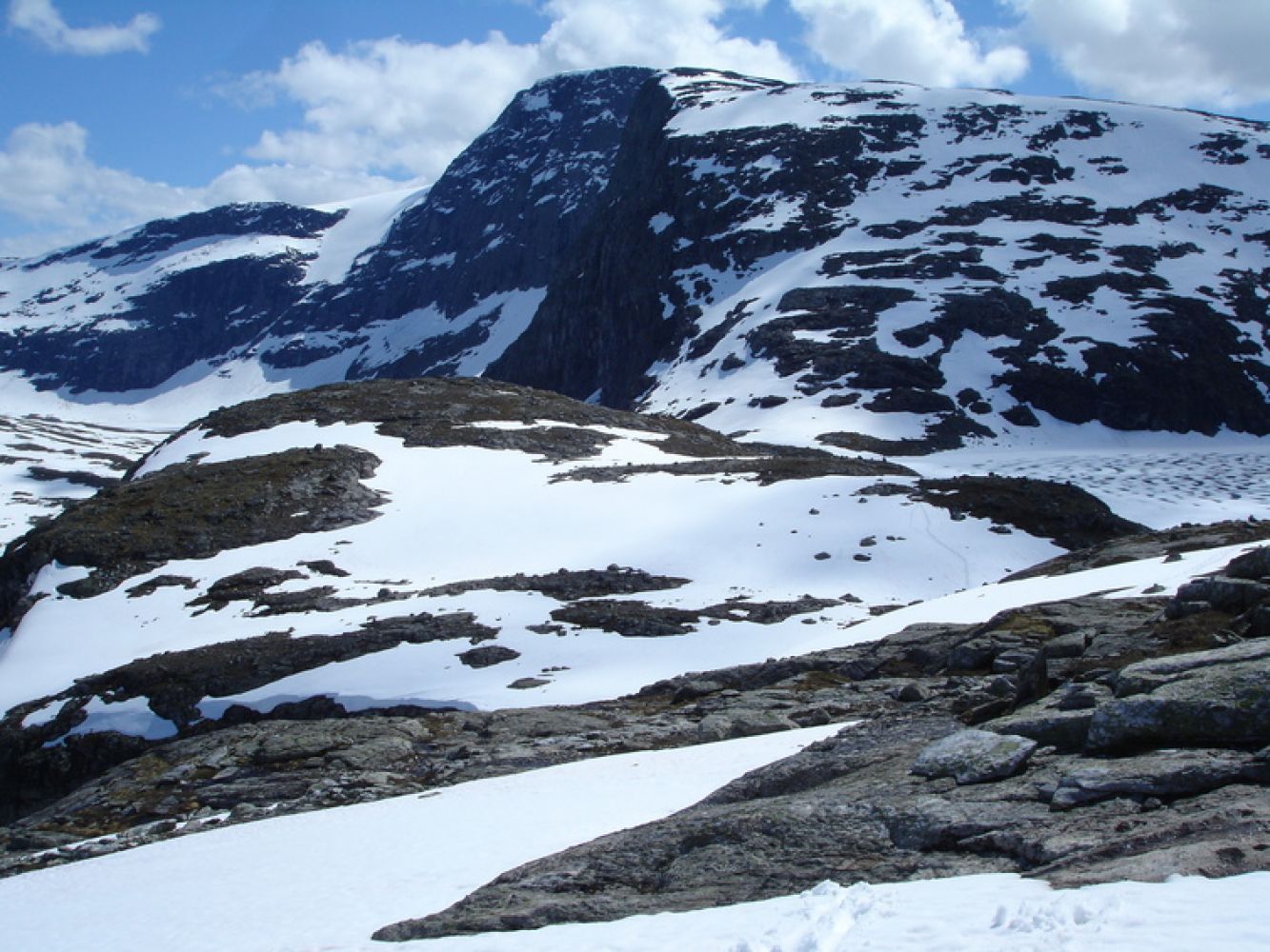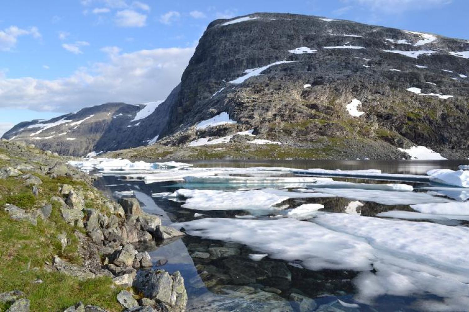 Høgfjellstur med god, men bratt sti opp til Saufonnholet, deretter godt vardet sti i høyfjellsterreng inn til Fleskevatnet og Fleskavassbu