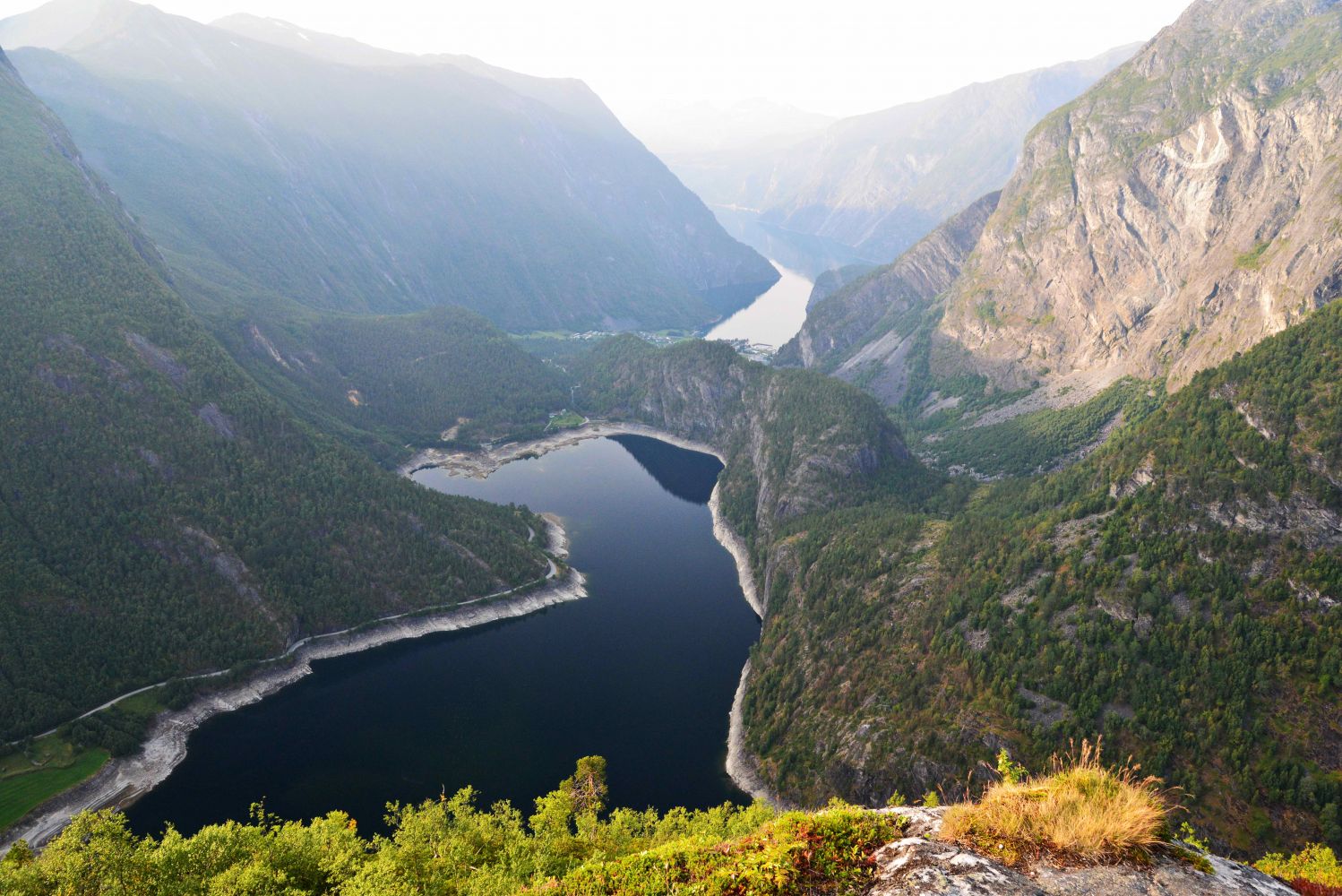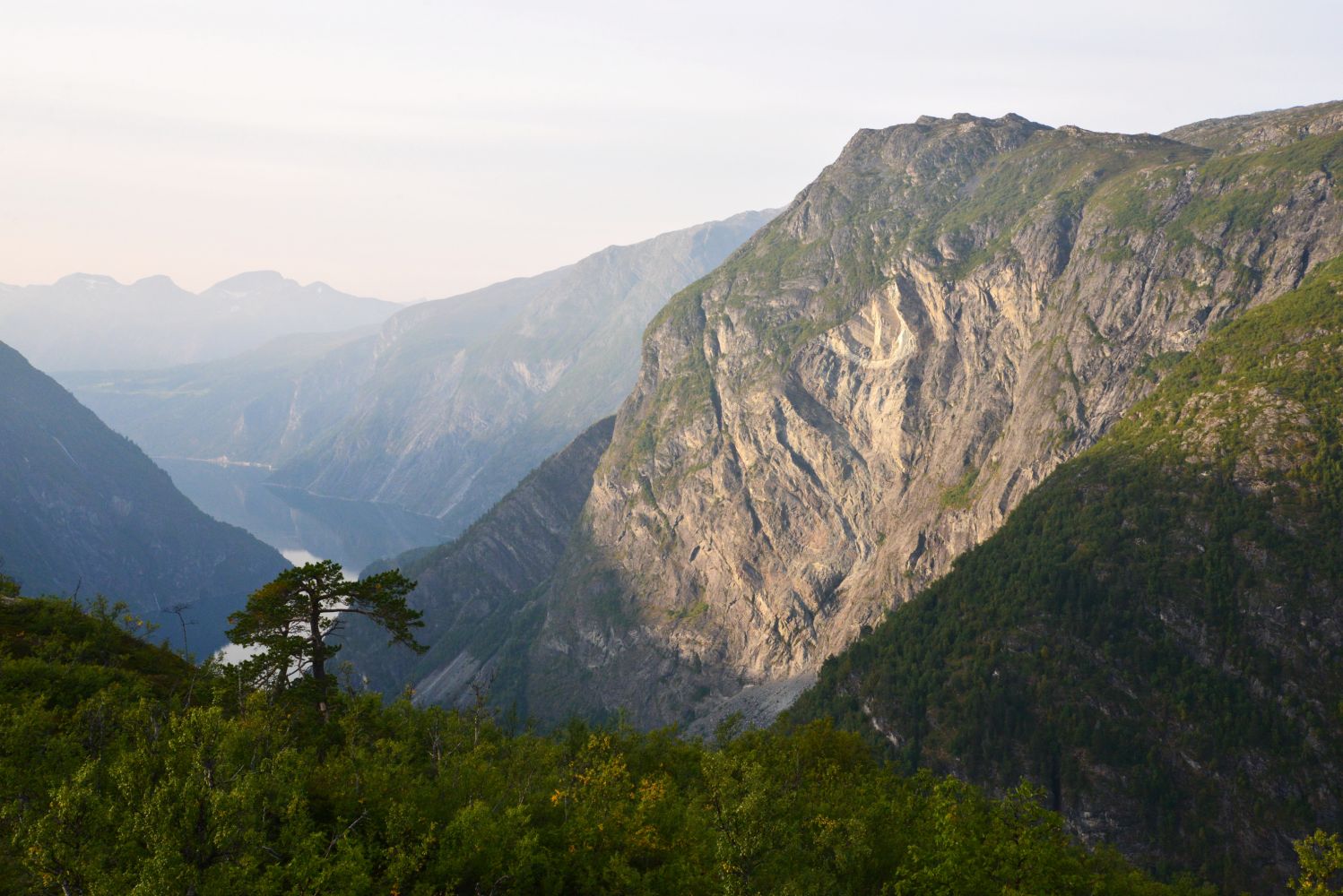 Frå Flyene har du fri sikt ned i Tafjordbyda og utover Tafjorden. Rett under deg ser du Onilsavatnet, og såret i fjellsida på Breinausa (til høgre) er ikkje til å unngå å sjå. Her gjekk det eit stort ras ned i Jimdalen i 1994. Bak deg ruvar Storfjellet som deler dalføret i to. Rødalen og Reindalen i aust og Kaldhusdalen mot sørvest. Flyene ligg ikkje meir enn knappe 800 moh. - men du får ei utruleg utsikt!