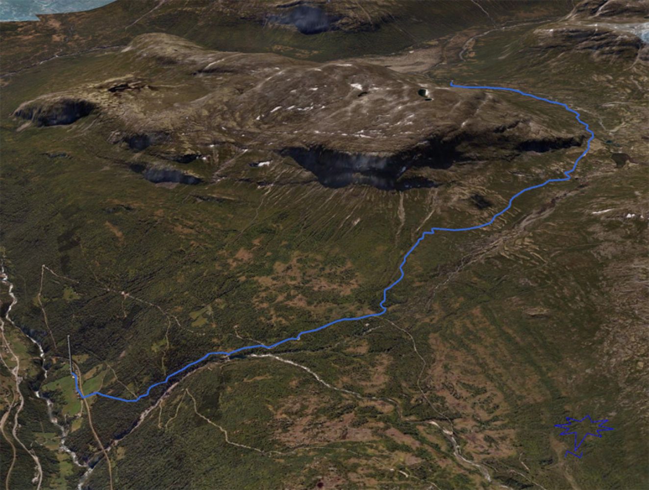Følg vegen et stykke oppover til den svinger til høyre ved en stor flate. Følg skilting inn i skogen langs traktorveg som går videre slakt innover til høyre for bekk. Etterhvert krysser vegen oppover et brattere parti over skoggrensa (Resbakkan) før den legger seg og går flatt innover siste stykket mot Alteret.