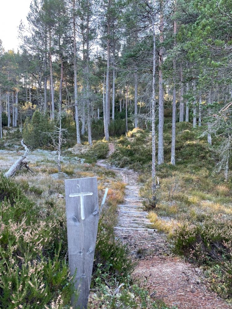 Parkering ved Sekken kirke. Stien starter rett ved bautaen over Håkon Herdebrei på Sekkenes.