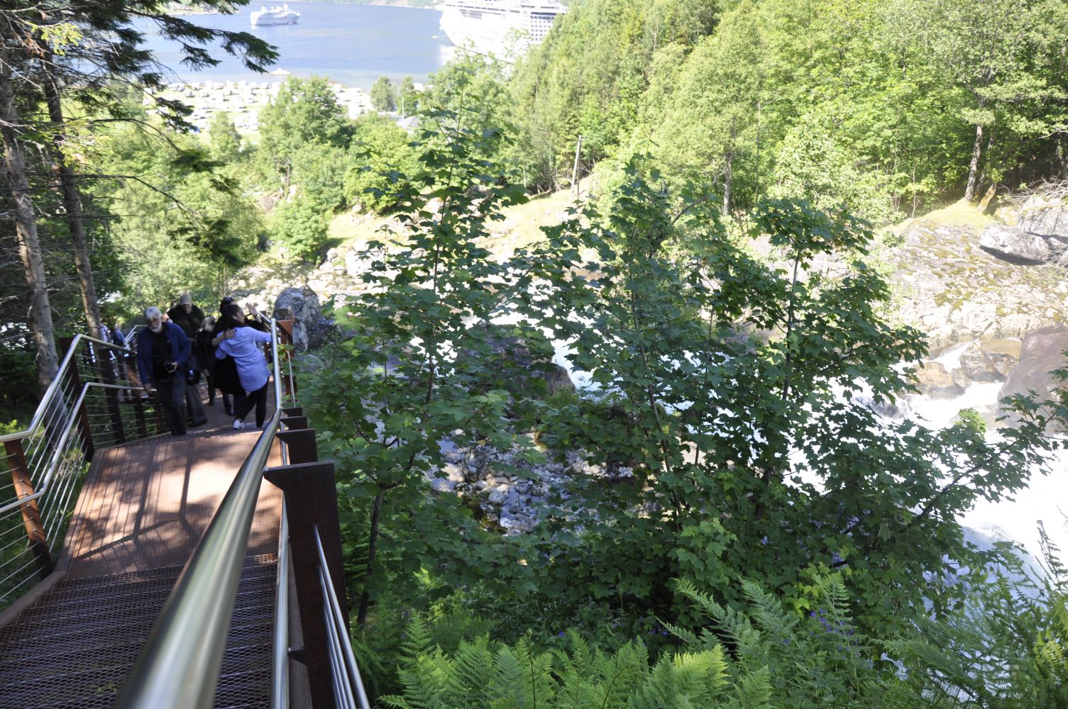 Turen er ei spektakulær vandring opp langs Storfossen i Geiranger. Du følgjer ei flott trapp i cortenstål og det er fleire utsynspunkt undervegs. Flott arkitektonisk - og du kjem svært tett på naturkreftene. Vandringa er lyssett.