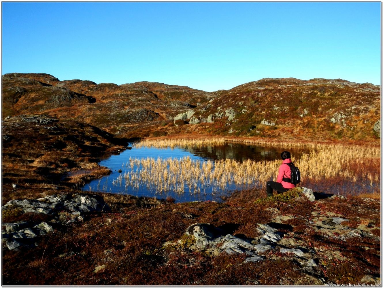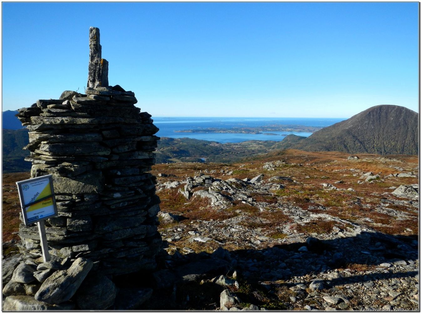 En flott tur over mange topper: Frænavarden, Sæterfjellet, Storfjellet, Nonsfjellet og Valltua. Vi gikk de i denne rekkefølgen, men det er intet i veien for å gå motsatt. Du får en fantastisk utsikt, forskjellig fra topp til topp. Vi kom ned ved øverste garden i Sandsbukta.