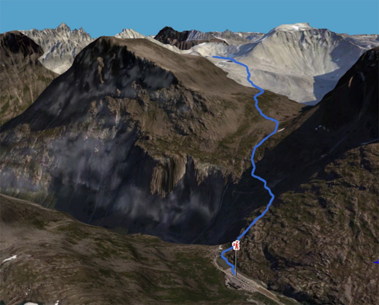 Bratt oppstigning til høyre for elva leder opp til Stigbotn. Herfra er stien tydelig merket med varder. Følg høyrekanten av Stigbotn først, før den krysser over ura til venstrekanten av Stigbotn. Herfra er det slak stigning oppover til en rygg som følges innover til ei ny grov ur med bratt stigning. Følg vardene opp gjennom ura til terrenger legger seg litt igjen. Følg en senking i ura videre oppover til en ser baksiden av Trolltindene. Herfra følges dalen over en liten bre, og deretter ura til venstre for breen videre innover til frokostplassen. Frokostplassen ligger helt på kanten til venstre i laveste punktet før det går opp igjen mot Trolltindene.