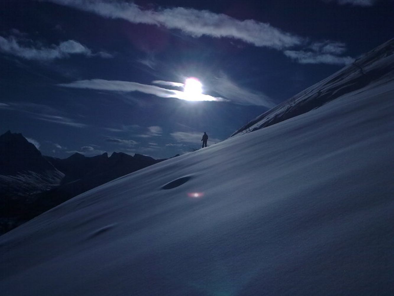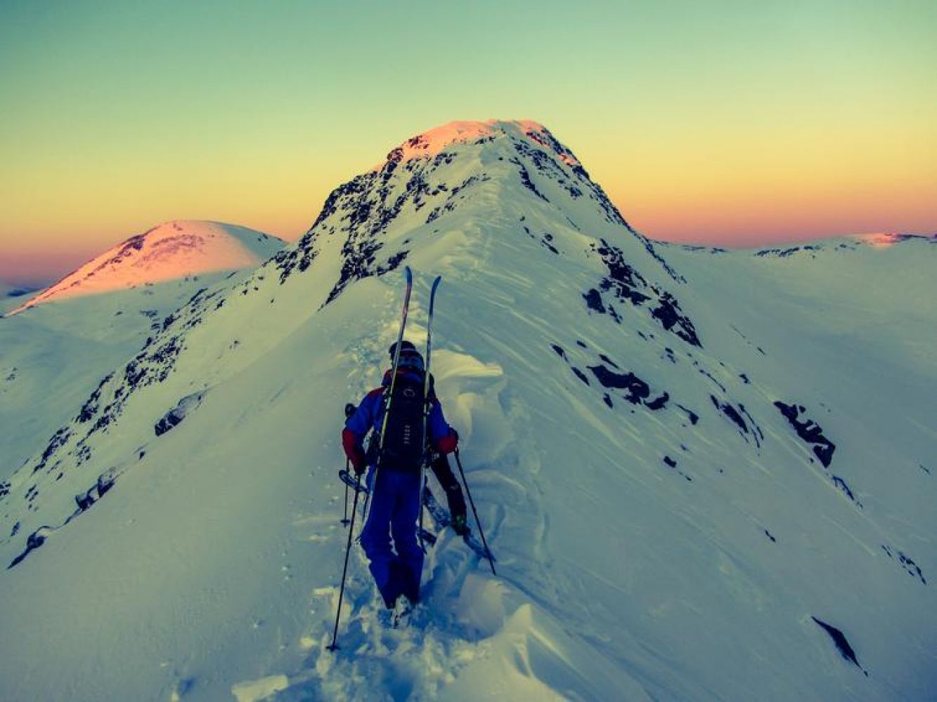 Fra ryggen fortsett oppover og hold til venstre på toppen til en kommer opp på toppryggen. Følg denne siste stykket mot toppen, men vær varsom med skavler.