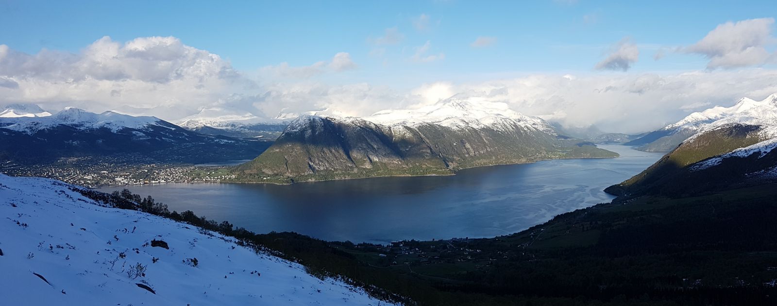 Det er flott utsikt mot Volda, inn Austefjorden og ikkje minst inn Dalsfjorden