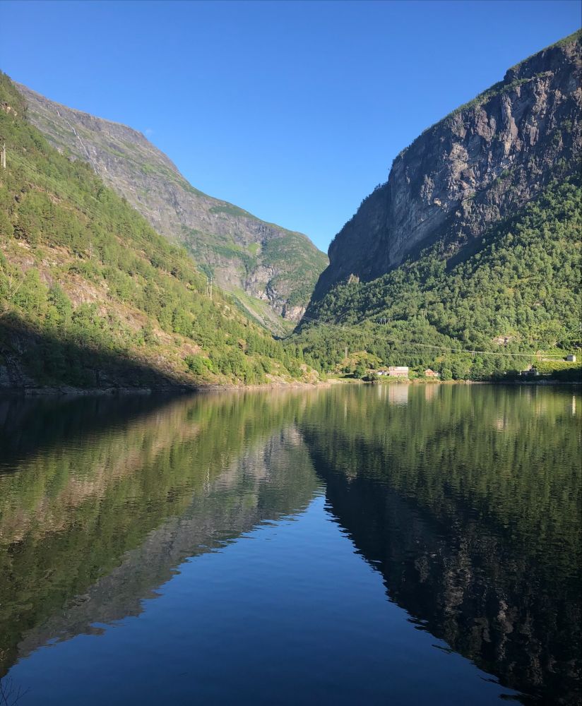 Når du kjem fram til Øyna ser du rett mot den 96 meter høge Zakariasdemninga som var Nord-Europas høgaste då ho vart bygd i 1968.
