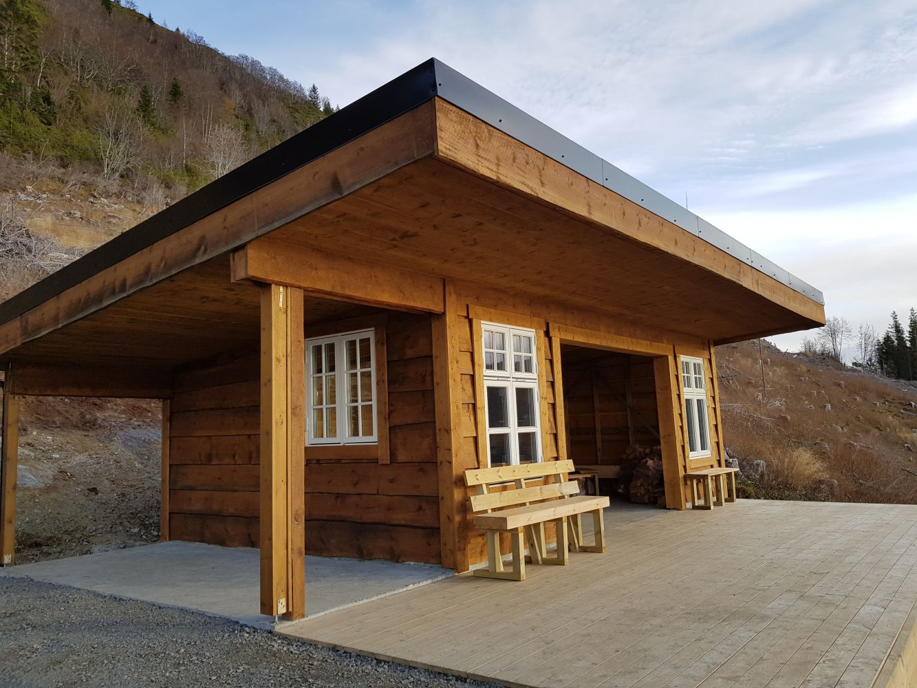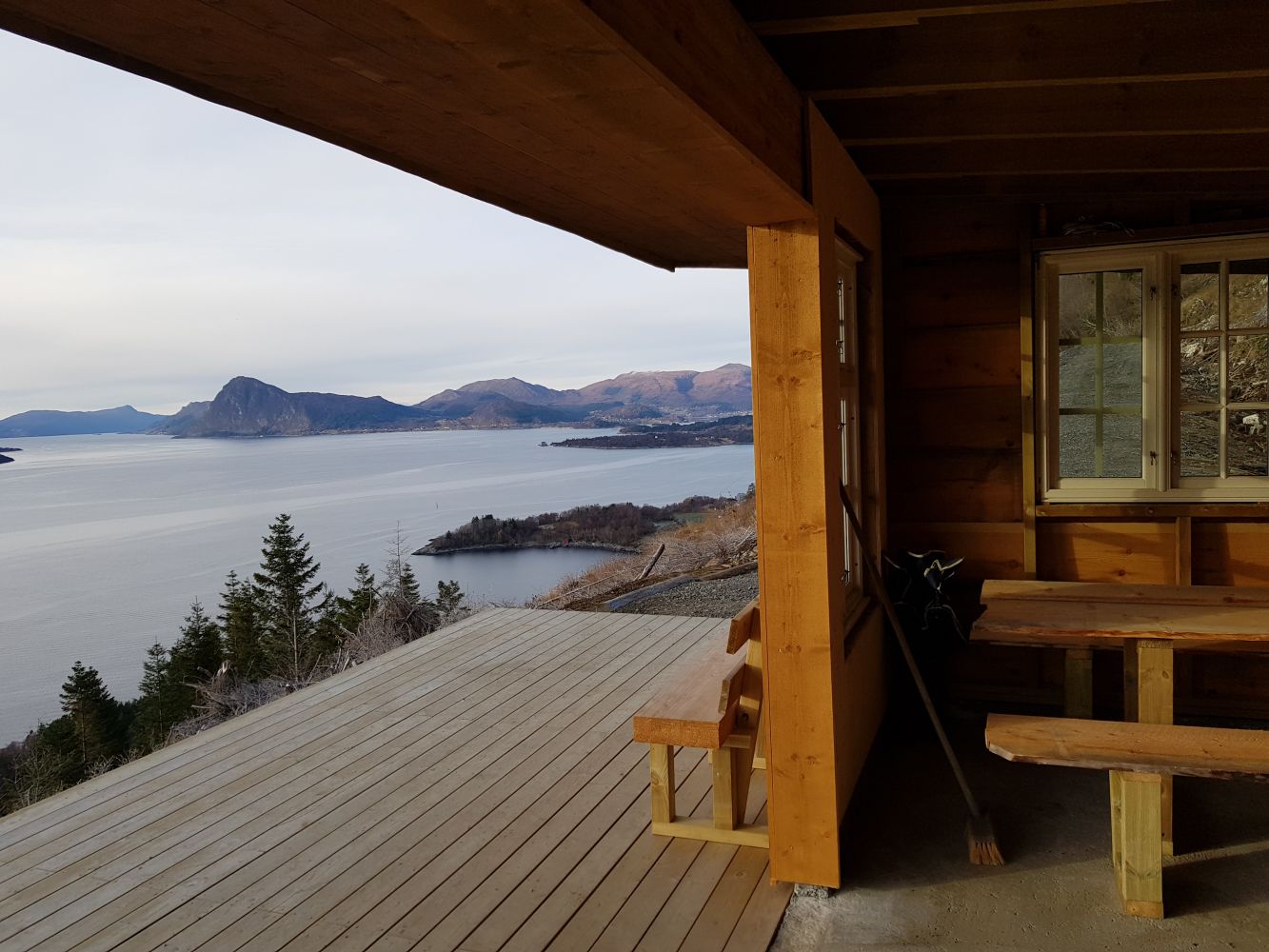 Tur på skogsveg til det som kanskje er Sunnmøre sin vakraste gapahuk, med flott utsyn over Berkvika, Voldsfjorden og Rovdefjorden.