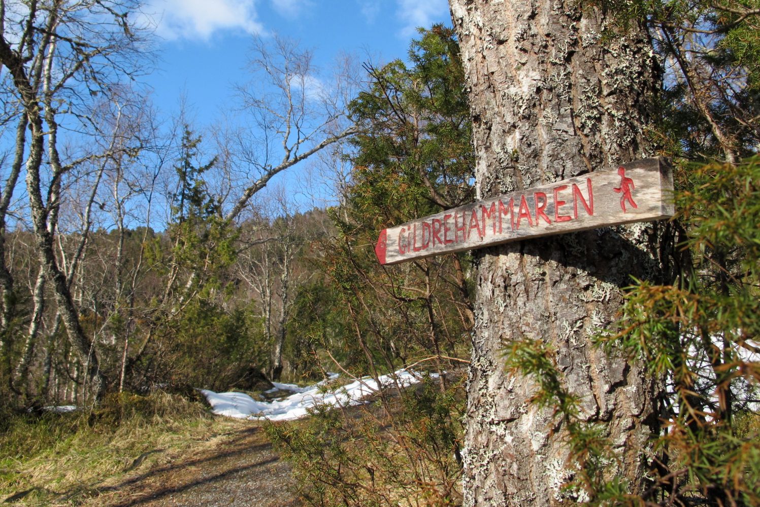 Lurer du på kvar namnet Gildrehammaren kjem i frå? Gildre er ein fangstreiskap som verkar når dyr kjem borti ein utløysingsmekanisme, til dømes saks og sjølvskot. Truleg har dette vore ein plass der ein sette opp gildrer og difor namnet. God tur!