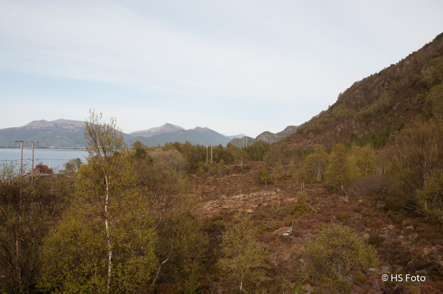 Ved det første treet som er merket skal vi følge et lite tråkk mot nord, gjennom noen grantrær.Området foran oss utvider seg ganske raskt, med vid utsyn mot nord, og Nordøyene. Stien blir også betydelig tydeligere her.