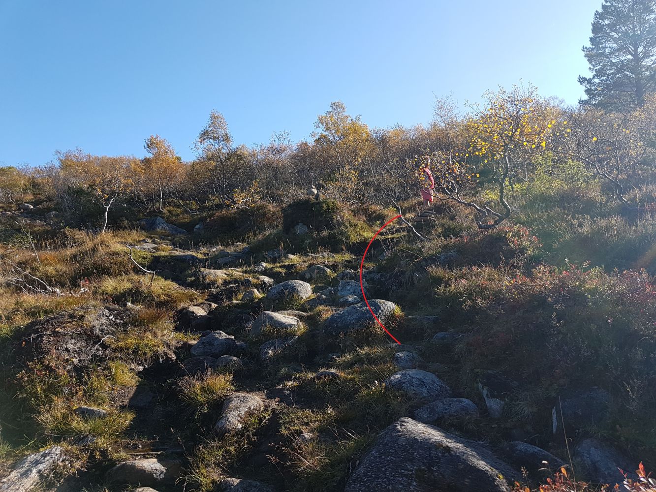 Frå parkeringsplassen følger du skogsvegen som går mot søraust.Startar ved bommen. Du passerer ei bru (Tverrelva). Følg vegen frammover dalen eit godt stykke heilt til du kjem til eit Y vegdele (Høyset), her tek du oppover til venstre. Du endar oppe på Gimsdalsstølen etterkvart og elva rett ned til høgre. Denne skal du over ved lita bru. Sjå merking/rås ved vegen. Gå over brua og følg råsa. Like etter kjem du til eit par vardar som viser kvar du skal ta av på stien som du skal følge vidare (ta av til høgre). Stien er tydeleg heilt til topps. Du går først over litt myrlendt område, så gjennom bjørkeskog og etterkvart i ur/stein. Stien er tydeleg og god.Utsikta frå toppen er flott; ta deg også tid til å nyte den undervegs.