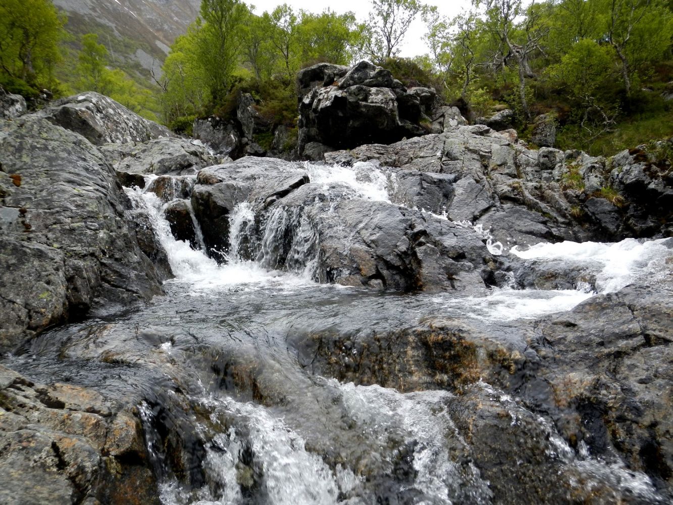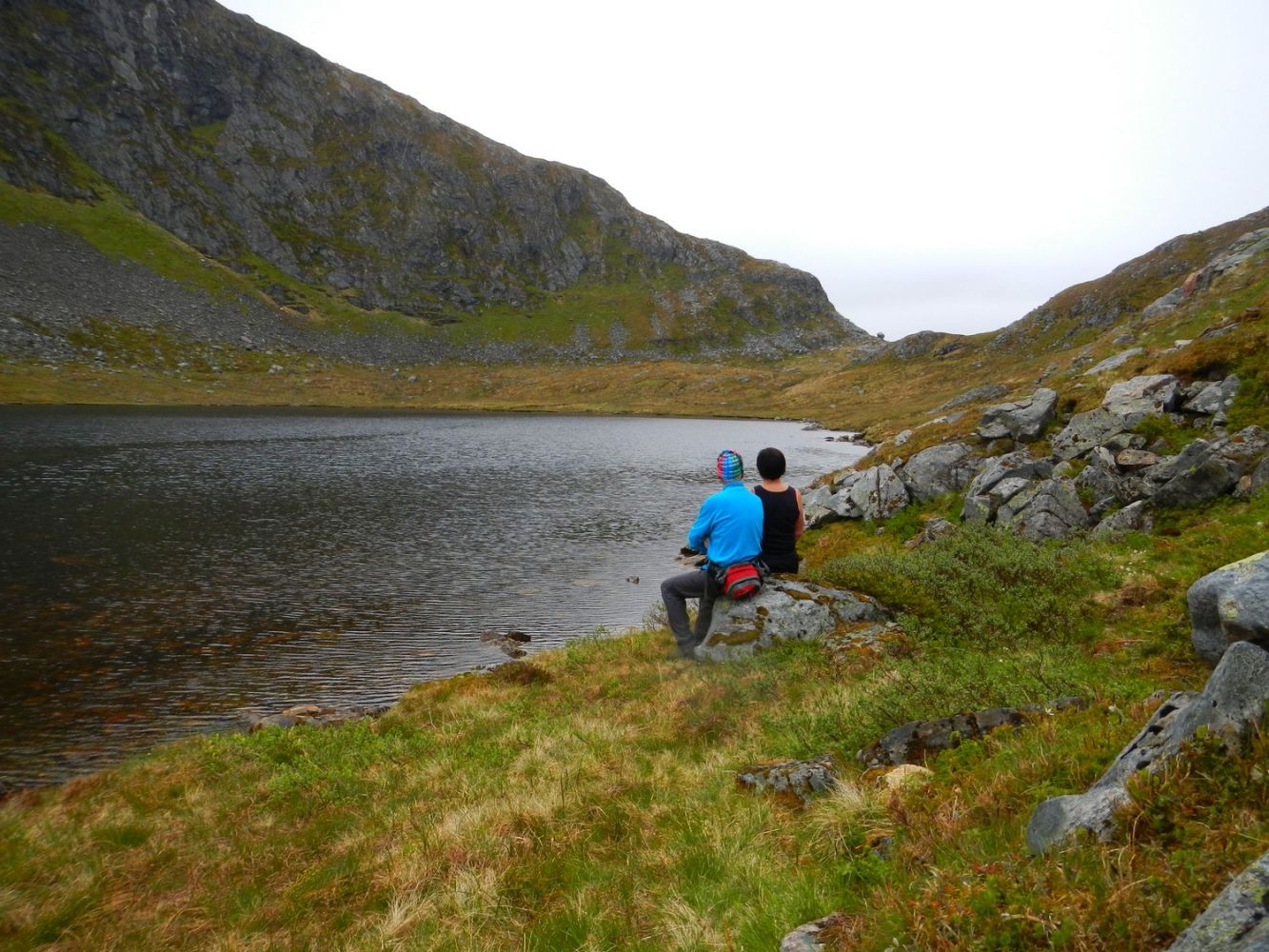 På høyre side av vatnet er det mer kupert terrent med steiner - teltplassen er på østsiden, andre siden av vatnet. Det tar ikke lang tid å gå rundt. Det er også mulig å gå sørover til Malmesetrene.