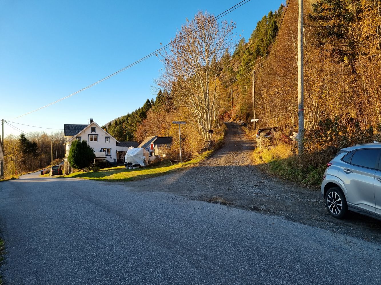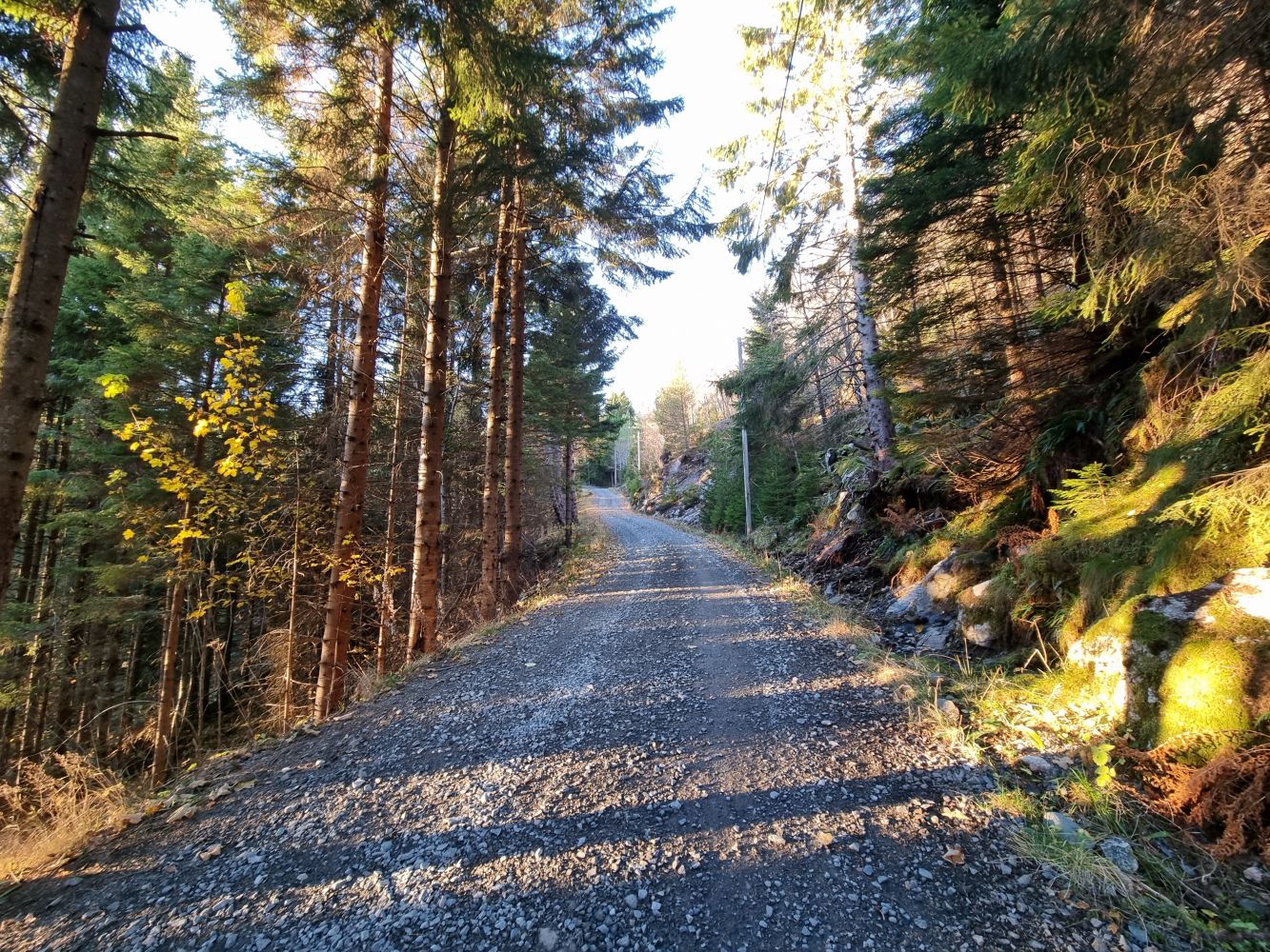 Turen går i god stigning på grusveg som svingar seg opp gjennom skogsida frå Gjerset til idylliske Gjersetdalen.