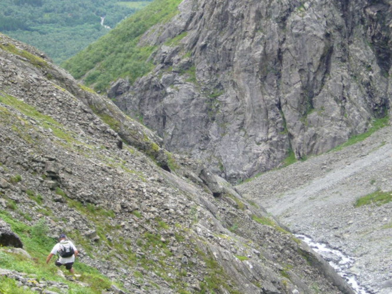 Siste stykker opp krysser stien litt fram og tilbake, og så opp ei kløft til det slaker ut. Utsatte partier er sikret med kjetting. Følg så slakere parti opp til Gluterstauå.